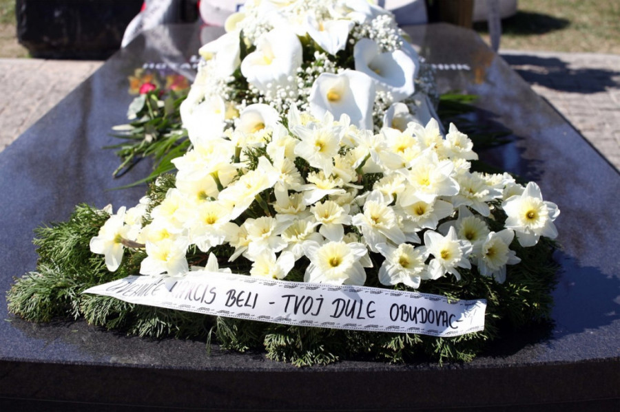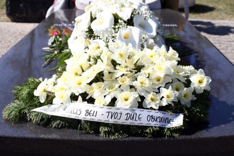 Supruga Gordana došla je sa sinom Mihajlom, odmah je prišla grobu, naslonika se i poljubila ploču. Nepomično je stajala i sve vreme plakala, dok je preko puta nje plače Šabanova sestra.