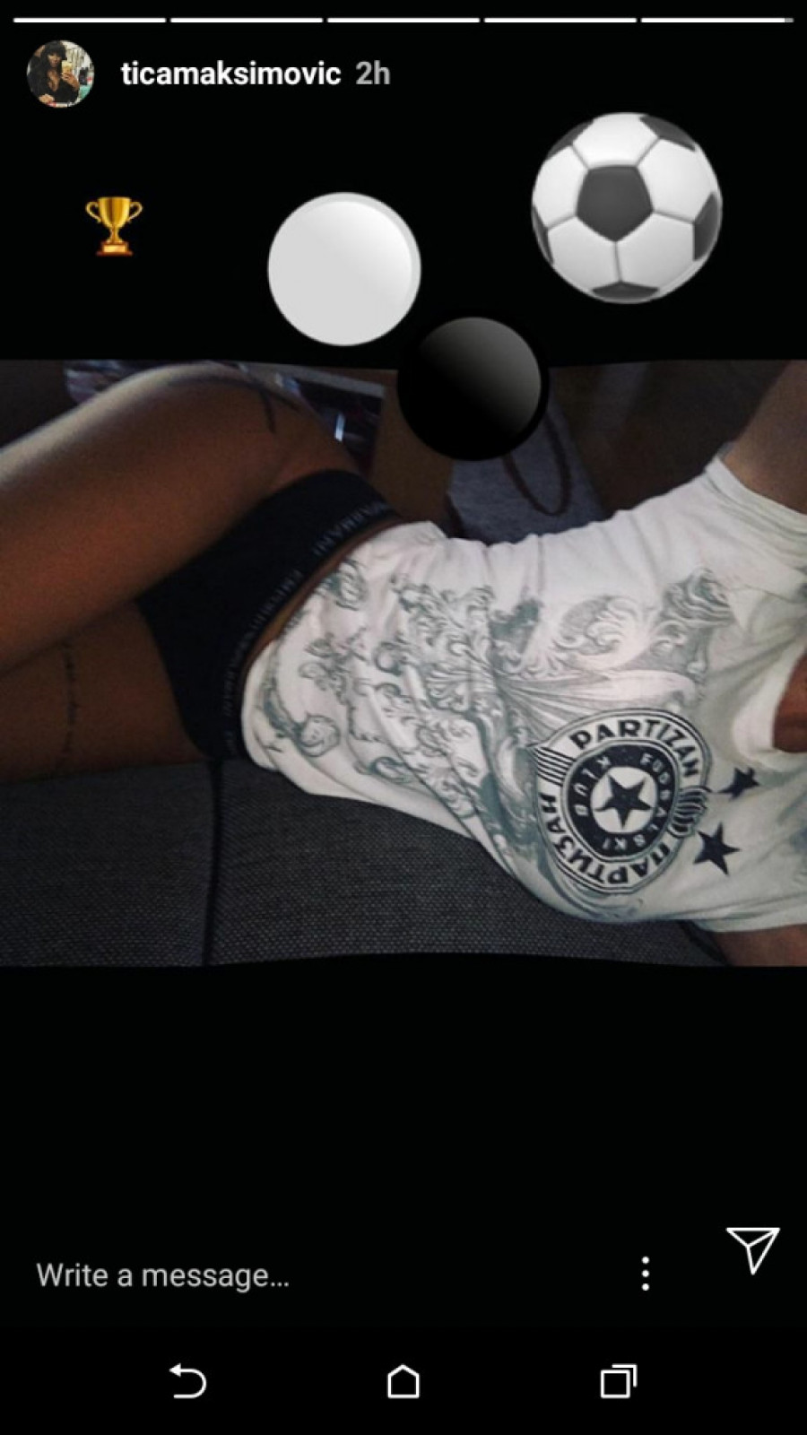 Ona je na svom Instagramu okačila sliku iz kreveta na kojoj je u Partizanovoj majici i crnim gaćicama sa tagovima Partizan.