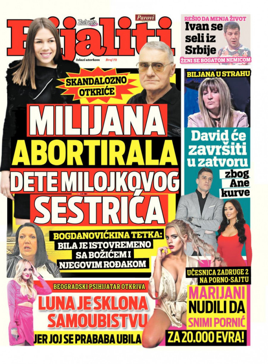 Milijana abortirala dete Milojkovog sestrića: Neverovatno otkriće u Rijaliti dodatku Srpskog Telegrafa!