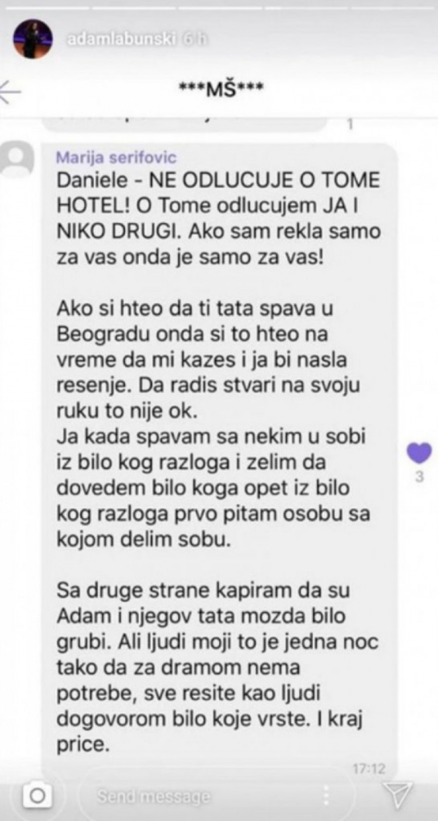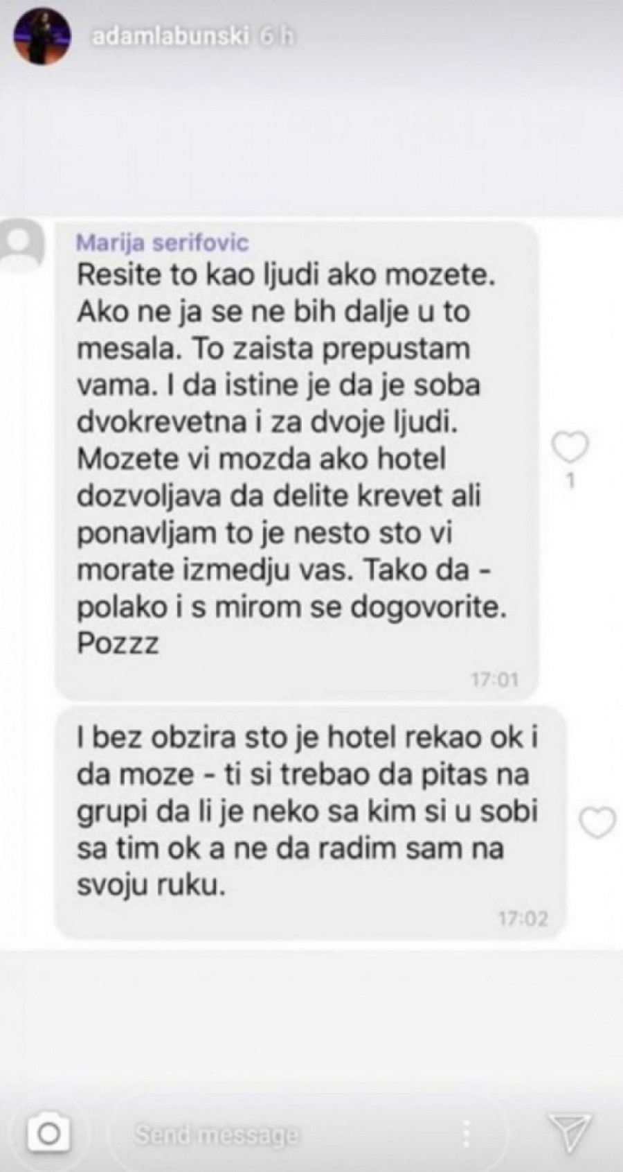On je, pak, za razliku od Marije putem Instagrama objavio njihovu prepisku, nakon čega je tek nastao haos na ovoj društvenoj mreži.