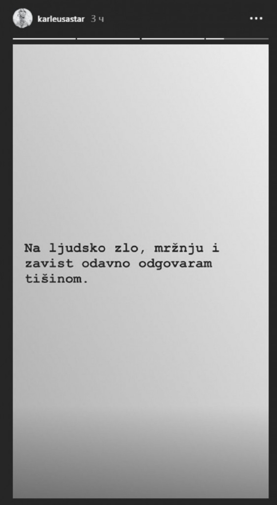 Karleuša i Duško nisu se oglašavali. Pevačica i dalje pomno prati sve što se o njoj pojavljuje u medijima, pa je napisala na Instagramu: