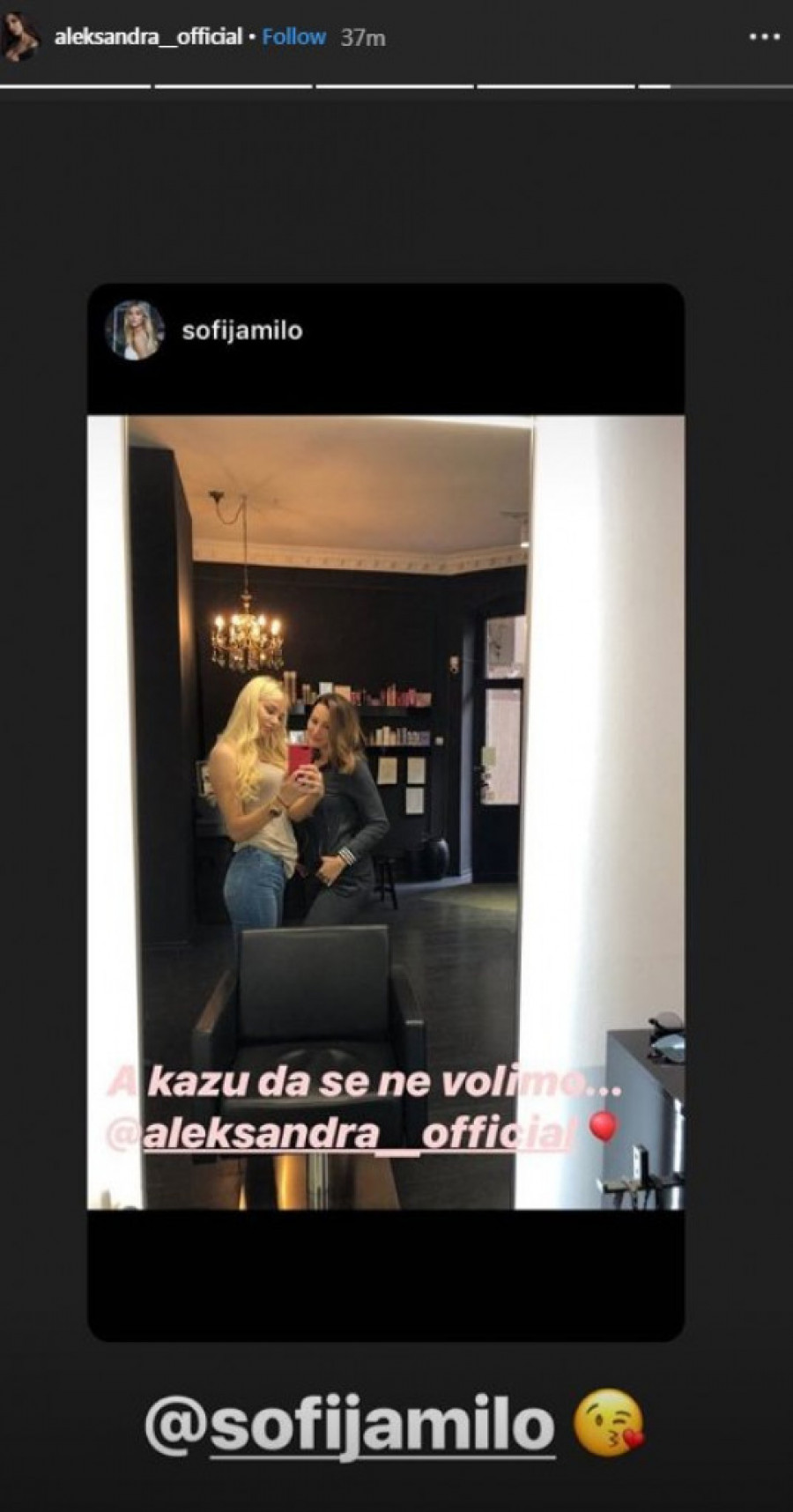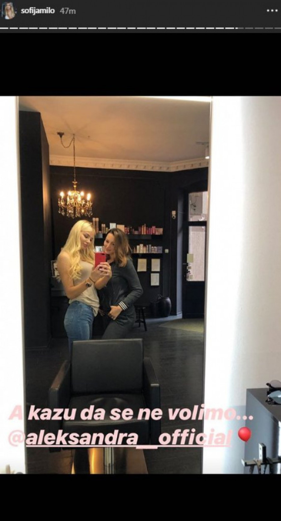 Foto: printscreen/instagram.comMnogo se spekulisalo o njihovom odnosu, kao i da li Aleksandra mrzi Sofiju, a njih dve su se u toku današnjeg dana srele u jednom frizerskom salonu i na opšte iznenađenje prisutnih njih dve su razgovarale jedna s drugom.