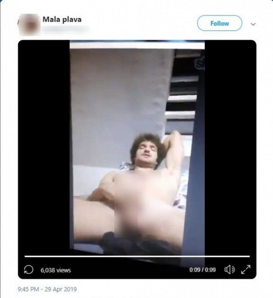 Foto: twitter.com/screenshotGlumac je na snimku potpuno obnažen i dodiruje svoj polni organ, a isti je osvanuo na Tviteru, baš kao i snimci Davora Štefaneka i Nikole Kalinića.