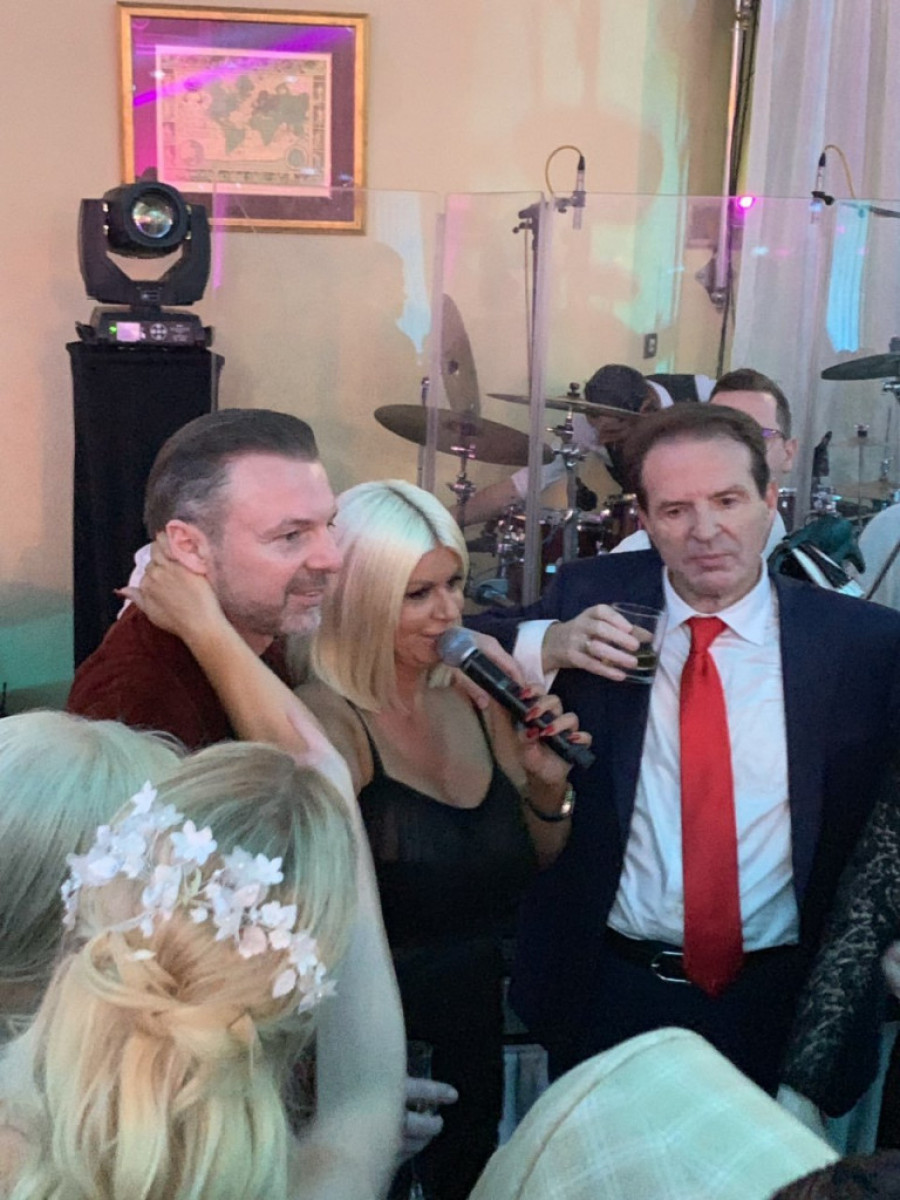 Među zvanicama koji su upriličili veselje kod Karića našla se i pevačica Dara Bubamara, koja se pojavila u provokativnom crnom kombinezonu.