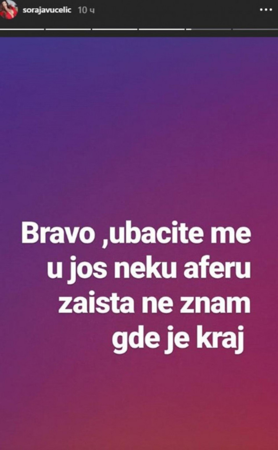 - Bravo, ubacite me u još neku aferu, zaista ne znam gde je kraj - napisala je zbunjena Vučelićeva u svojoj "Instagram priči".