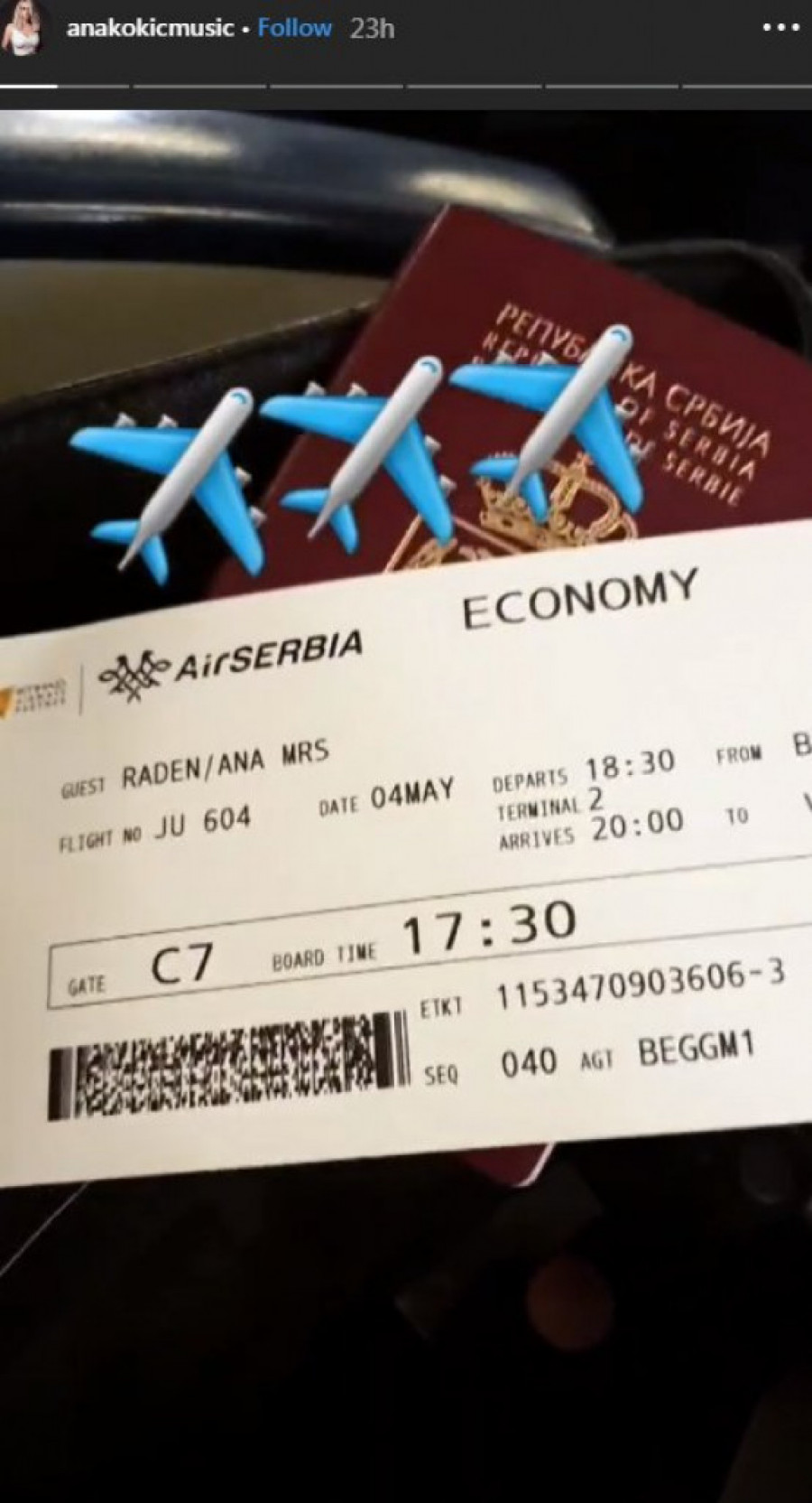 Foto: instagram.comNaime, Ana je uslikala svoju kartu i pokazala da ide na put, a ona ju je odala jer je na njoj pisalo pravo pevačicino prezime.