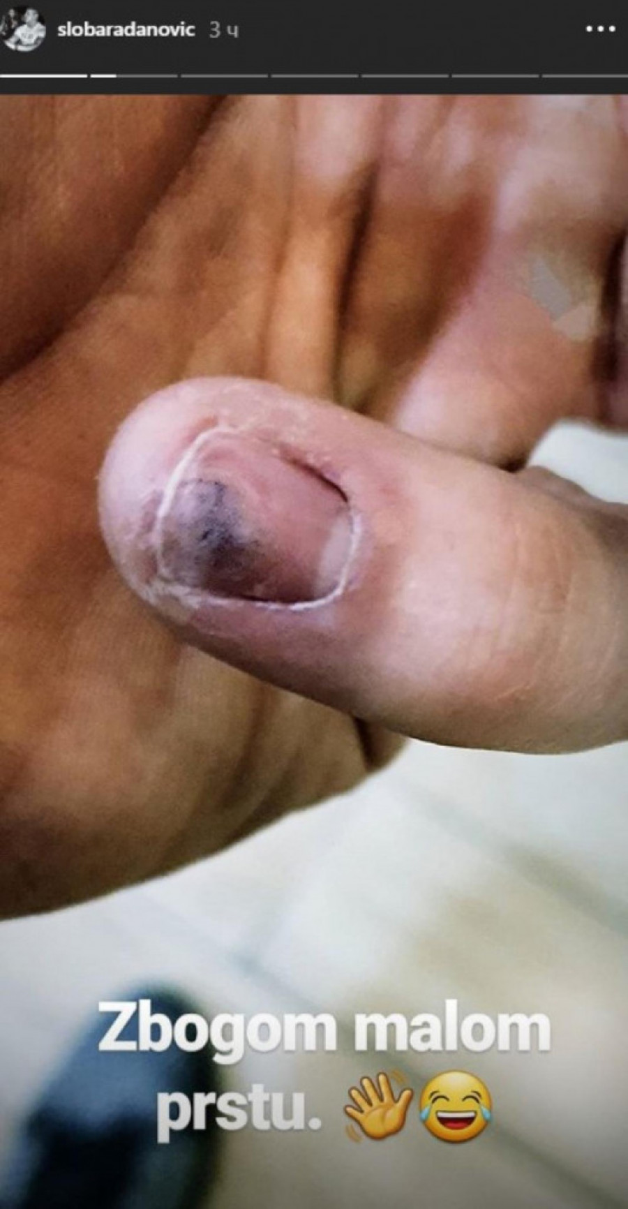 Foto: instagram.com/radanovic_sloba_fp- Zbogom malom prstu - napisao je pevač na Instagramu, pa se "oprostio" od svog prsta.