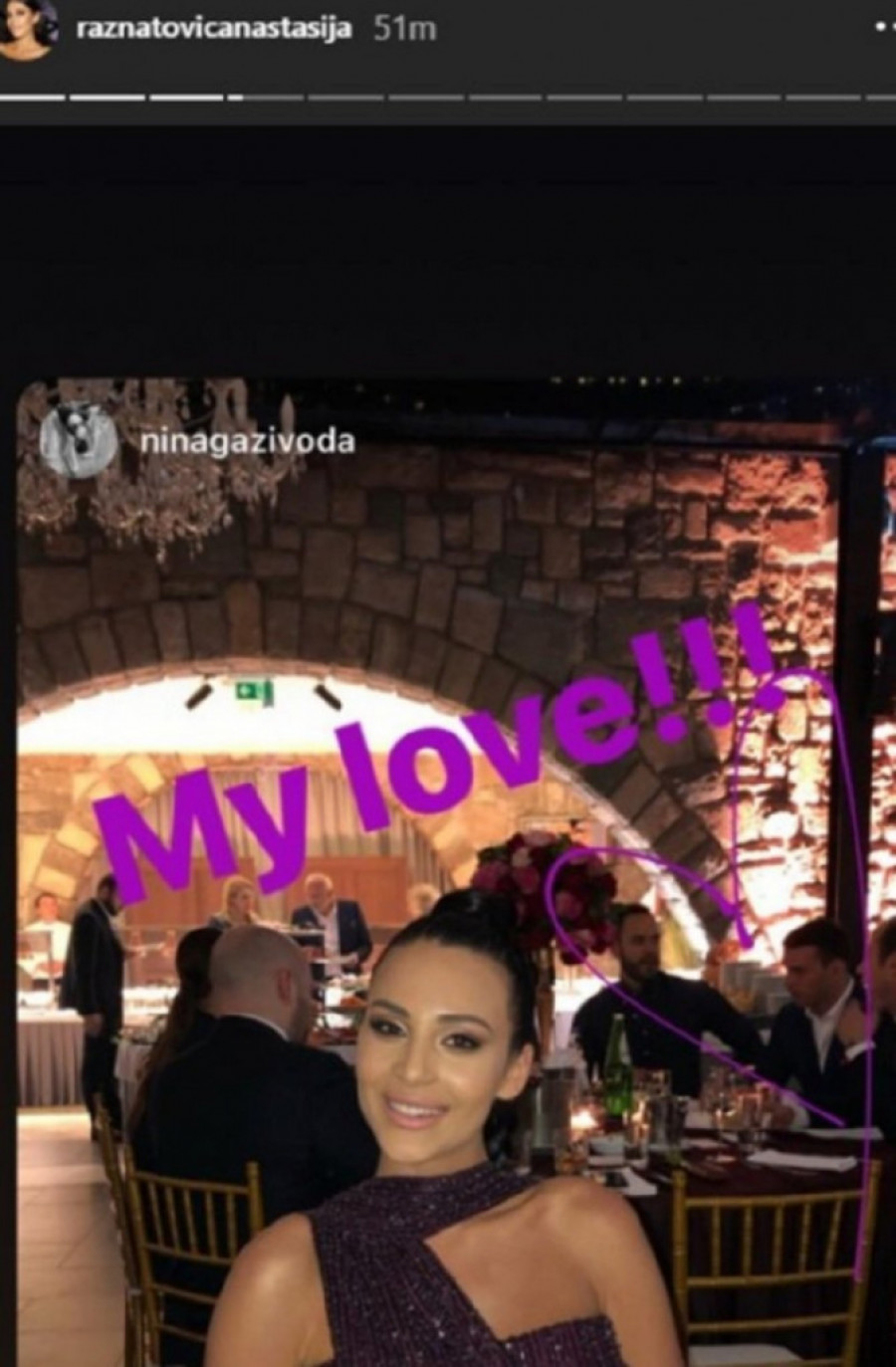 Anastasija je pozirala na Instagramu u saliu kojoj je proslavila rođendan, a u pozadini se video Đorđe koji je sedeo za stolom. Pevačica ga je primetila i iznad njegove glave nacrtala srce.