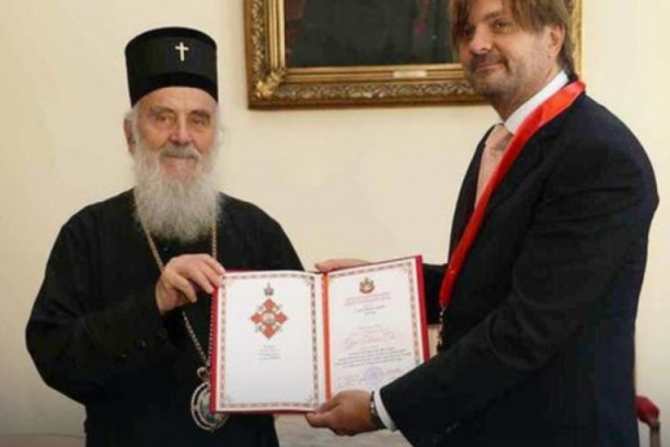 Foto: Privatna ArhivaPatrijarh uručio Milanu orden Svetog SaveMilan Popović dobio je orden Svetog Save, koji mu je lično uručio patrijarh Irinej zbog humanitarnih dostignuća. Ovo odlikovanje srpski biznismen dobio je zbog toga što pomaže projekte koje realizuje srpska društvena zajednica kada su u pitanju deca, stara i nemoćna lica. Takođe, Popović je pomogao izgradnji Hrama Svetog Save. Novčana sredstva je dao takođe za obnovu manastira Hilandar, a pomogao je druge projekte koje srpska crkva realizije. Inače, orden Svetog Save jedno je od najstarijih odlikovanja u Srbiji, a Srpska pravoslavna crkva ga uručuje ustanovama, institucijama i pojedincima za učešće u kreativnim, humanitarnim i građevinskim aktivnostima. |