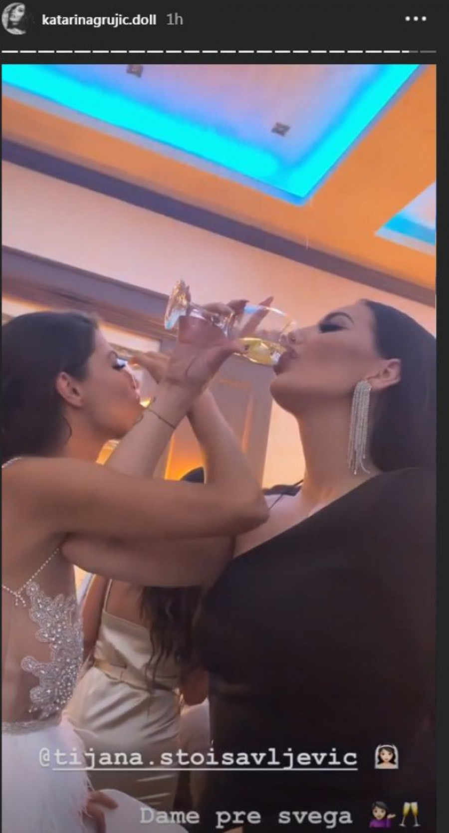 Katarina Grujić veliki je veseljak i redovno objavljuje fotografije, ali i snimke iz izlazaka i proslava. Ovoga puta svoje pratioce iz minuta u minut obaveštavala je o svom provodu na svadbi voditeljke Tijane Stoisavljević i fudbalera Mihaila Milutinovića.