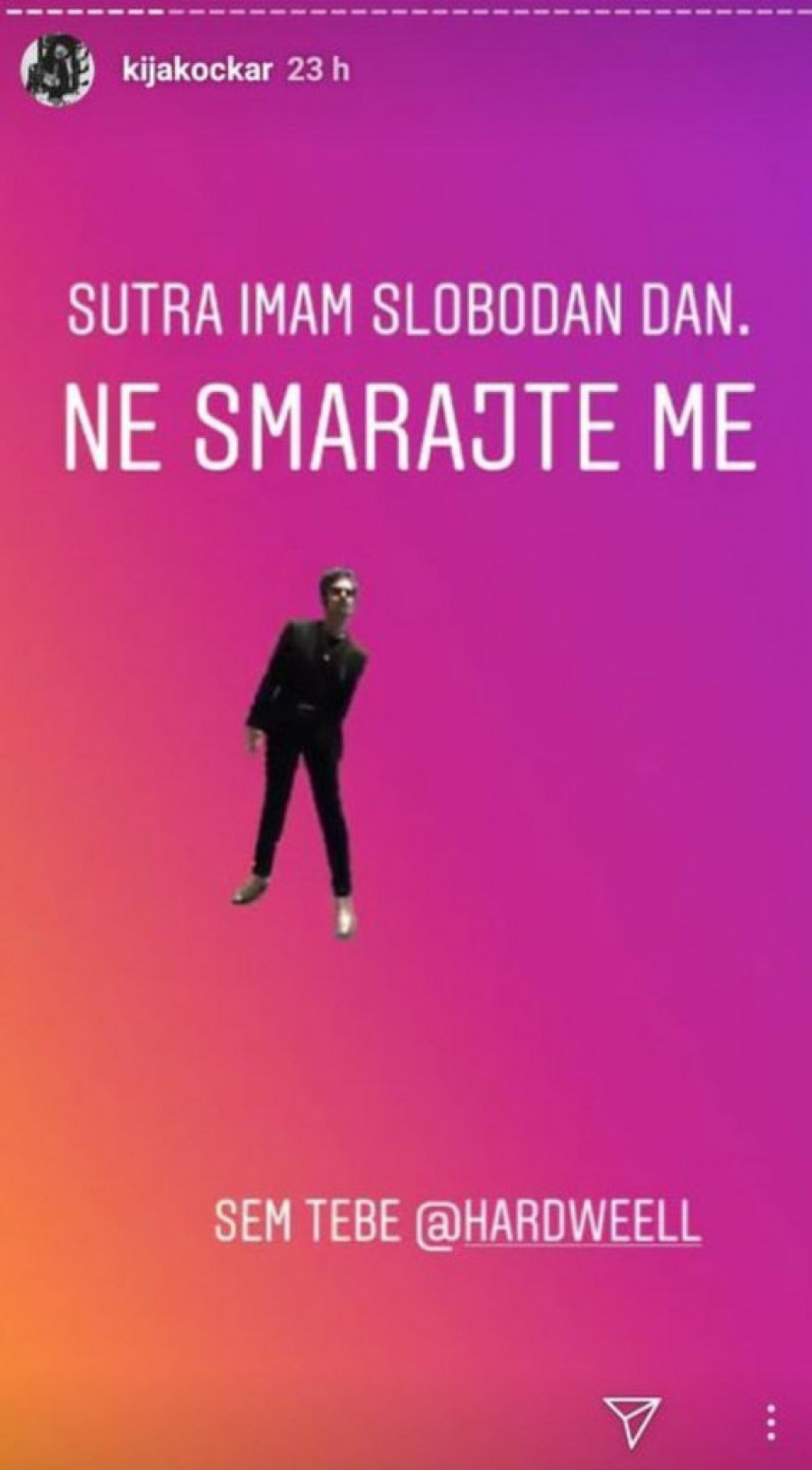 Foto: instagram.com/kijakockarNaime, na društvenoj mreži Instagram ona je još dan ranije otkrila da se i te kako raduje slobodnom danu.