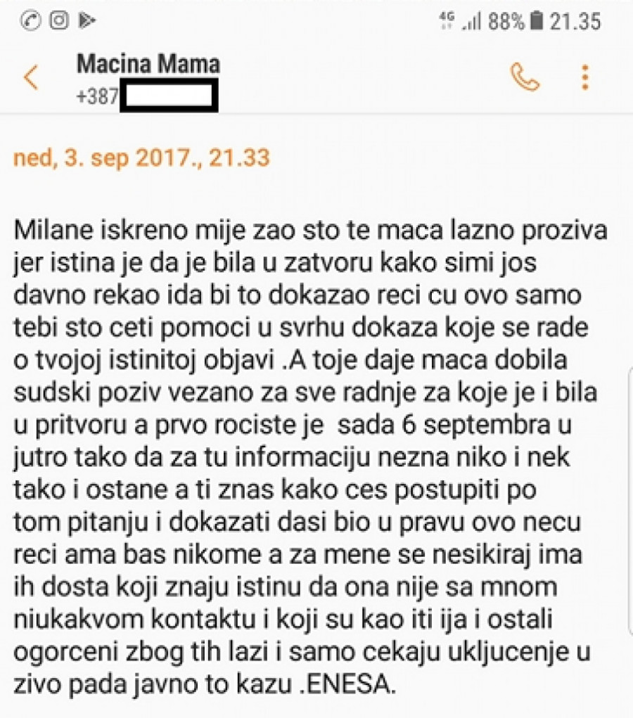 Foto: instagram.com/macadiskrecija91Međutim, kako je Milan budući učesnik rijalitija "Zadruga", baš kao i Maca, ovo sve je pogodilo Macinu mama Enesu, koja nije želela da prećuti. Naime, Enesa je do sada mnogo puta sarađivala sa našim kolegom te nije želela da njena ćerka blati bilo koga ko je Enesi pružio podršku kada joj je bilo najteže!