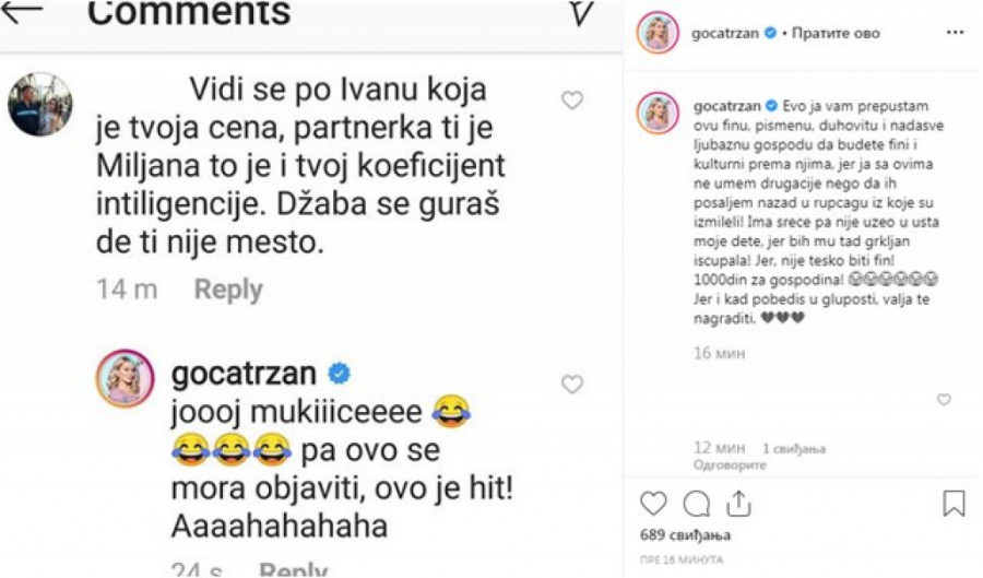 - Joj mukice! Pa ovo se mora objaviti, ovo je hit!- napisala je Goca uz smeh.