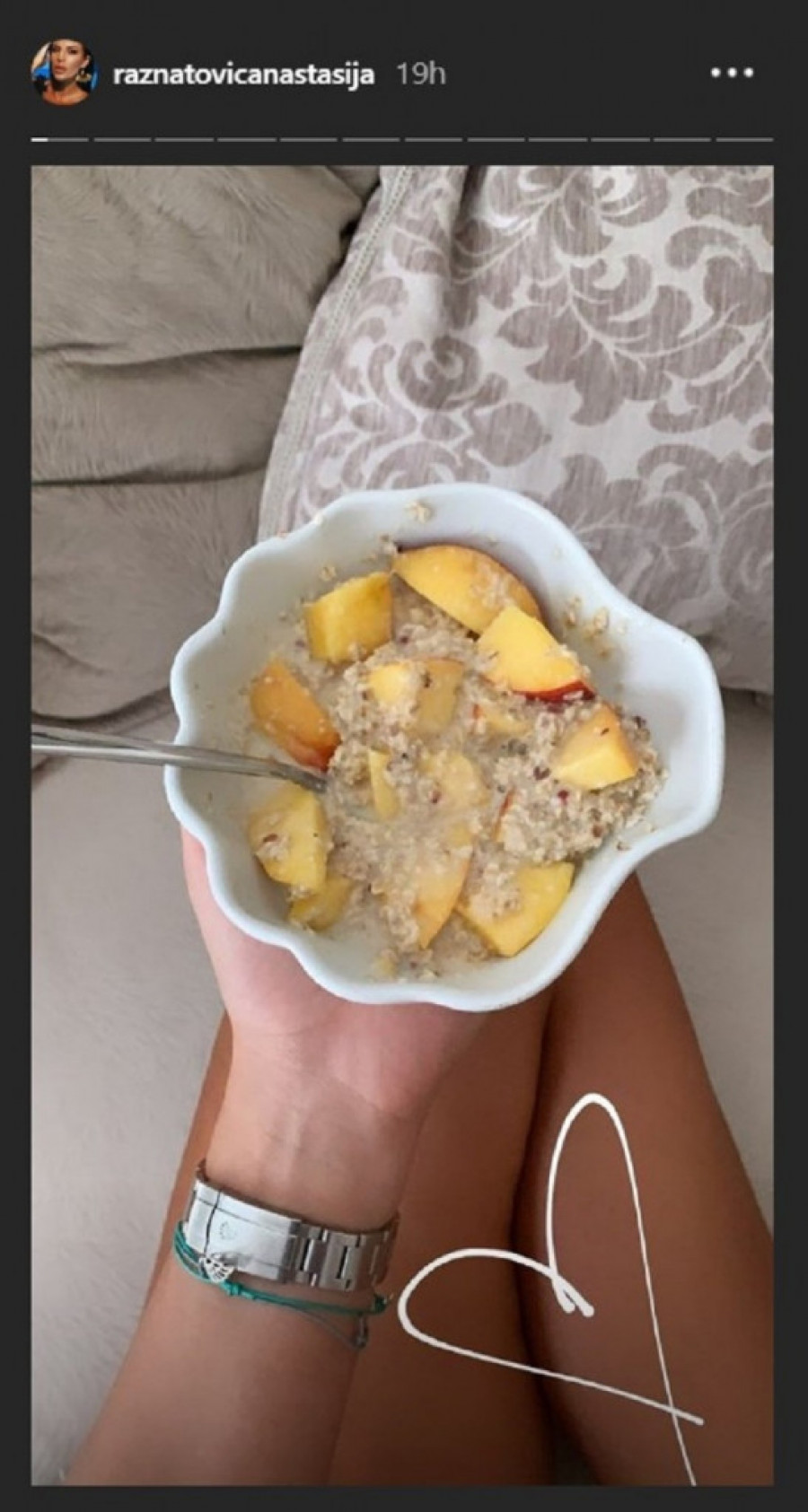 Ona je fotografisala jedan svoj obrok, koji se sastoji od žitarica i voća, a srce koje je dodala uz njega pokazuje da joj se ovaj način ishrane zapravo i dopada.