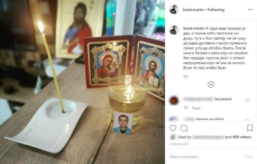 - I sada kada prošao je dan, i tmina noći pritiska mi dušu... tuga i bol hvataju me za gušu, da jedva drhtavim glasom prevalim preko usta da izgubih brata. Posle mnogo bitaka i rata koji si izgubio bez predaje... protiv jakog i opasnog neprijatelja koji ne zna za milost. Voli te tvoj mlađi brat - napisao je Marko.