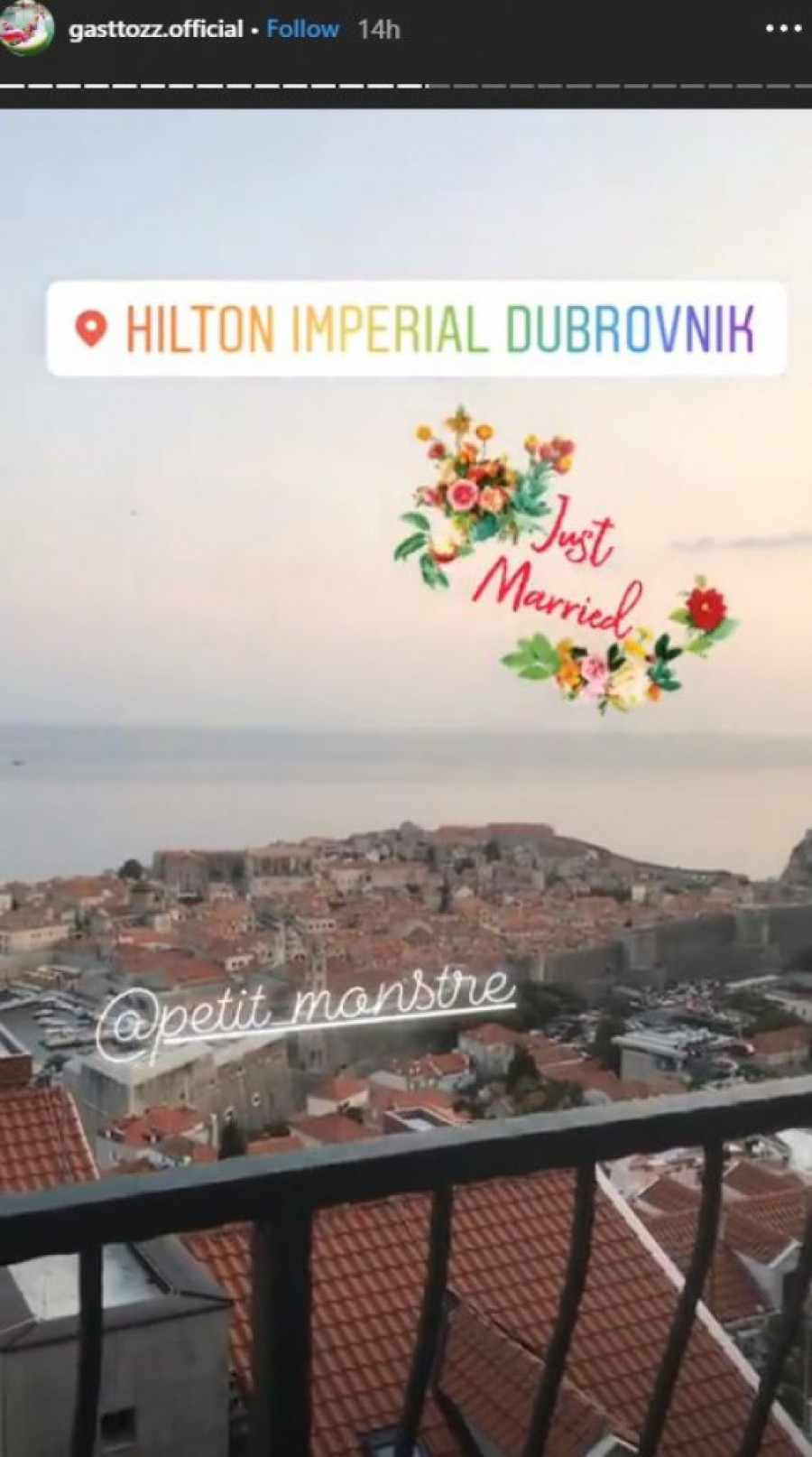 Međutim, Gastoz je non stop u društvu lepih devojaka i stalno se spekuliše kada će neku od njih predstaviti kao svoju devojku. Šokirao je svoje pratioce kada je na svom Instagram podelio fotografiju na kojoj piše "Upravo venčani" i tagovao se u Dubrovniku. Mnogi su pomislili da je daleko od očiju javnosti stao na ludi kamen i izgovorio sudbonosno "Da".