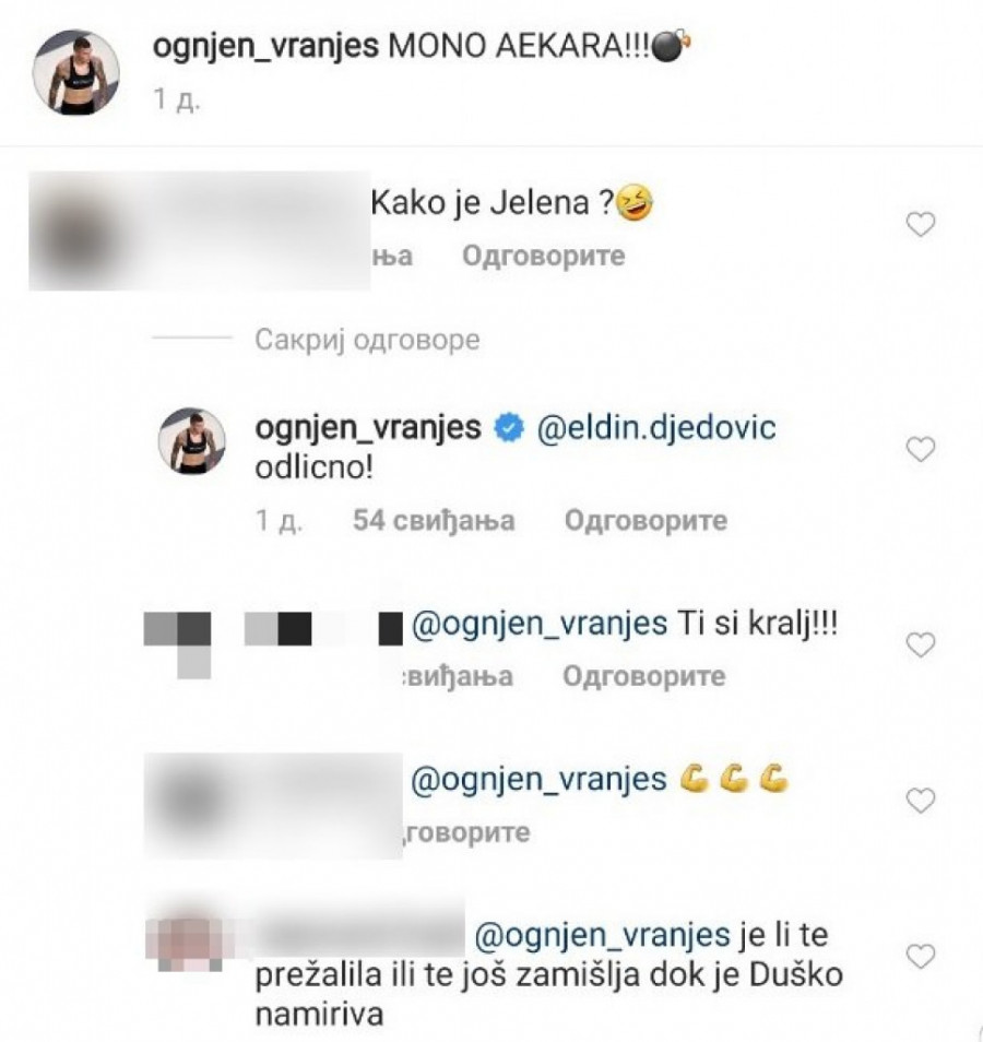 Foto: instagram.com/printskrinNa poslednji komentar, Vranješ nije reagovao.