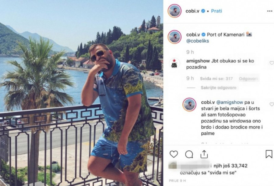 - Pa u stvari je bela maijca i šorts, ali sam fotošopovao pozadinu sa windowsa ono brdo i dodao brodiće, more i palme - našalio se Cobi.
