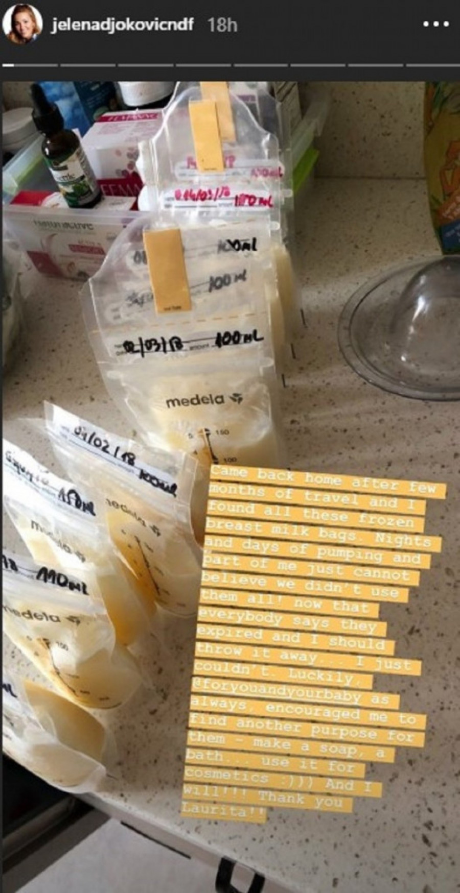 Foto: instagram.com/jelenadjokovicndfNaime, ona je odlučila da svoje majčino mleko zamrzne i iskoristi ga za proizvodnju sapuna i kozmetike.