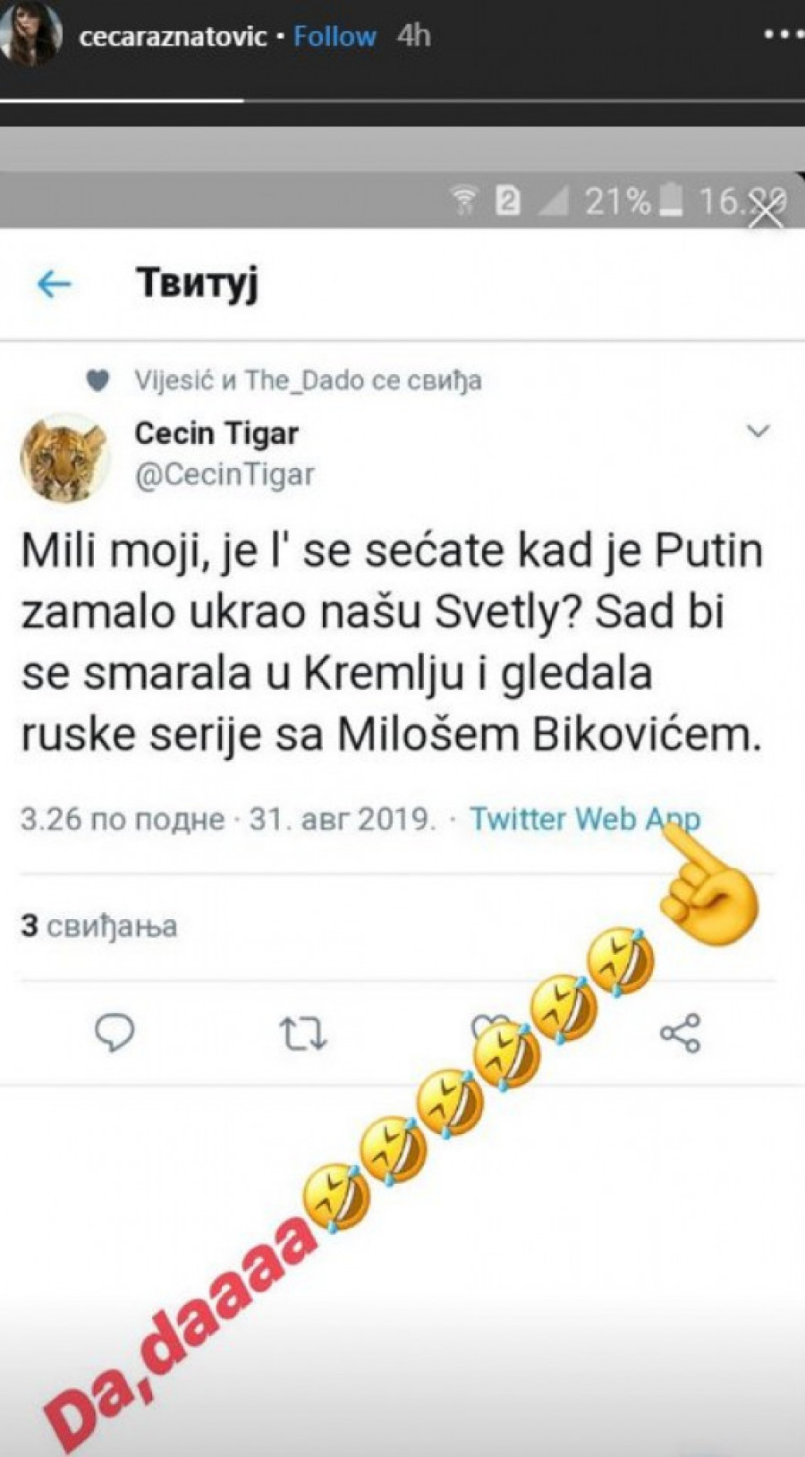 Svetlani Ceci Ražnatović na internetu zapala je za oko jedna objava koja ju je nasmejala toliko da je morala da je podeli sa svim svojim fanovima.