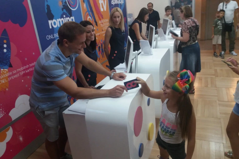 Naime, Luka je bio oduševljen pozivom za otvaranje poslovnice Globatela pa je u jednom trenutku stao za pult kako bi izdao neke od prvih SIM kartica ovog operatera.
