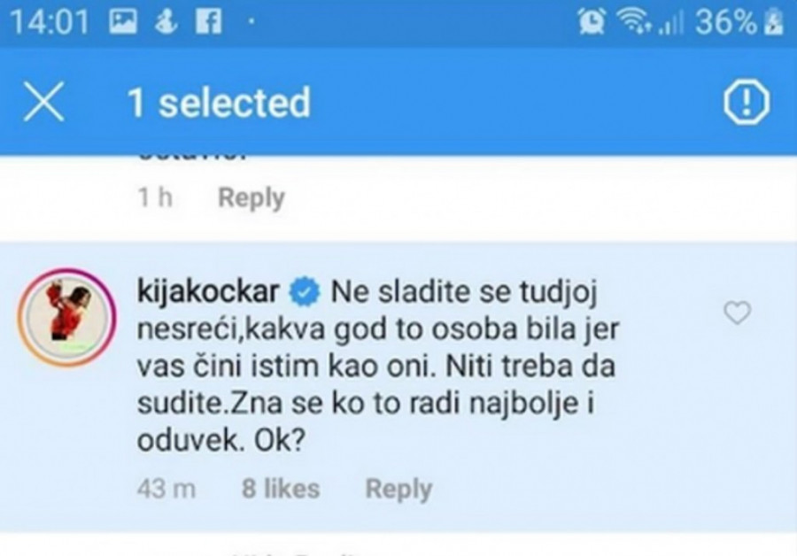 Kija je ostavila komentar ispod pomenutog video snimka, navodeći da se nikako ne treba sladiti tuđoj nesreći.
