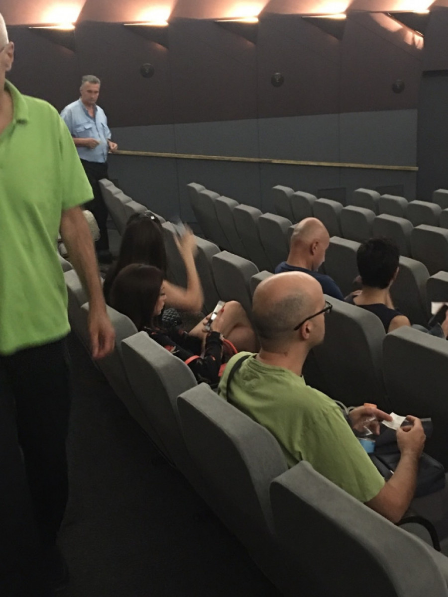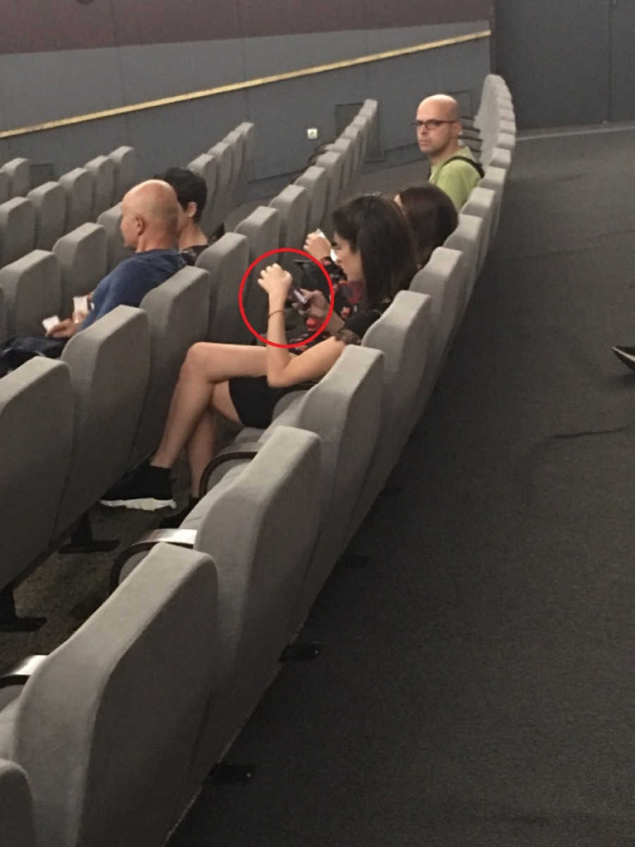 Foto: Republika.rsNaime, mlada glumica se u Kulturnom centru nije ponašala u skladu sa prilikom. Nakon što se pojavila u sportskim patikala Jelisaveta je tokom celog trajanja filma "Raskršće" u rukama držala telefon čime je ometala sve koji su pokušali da uživaju u projekciji.