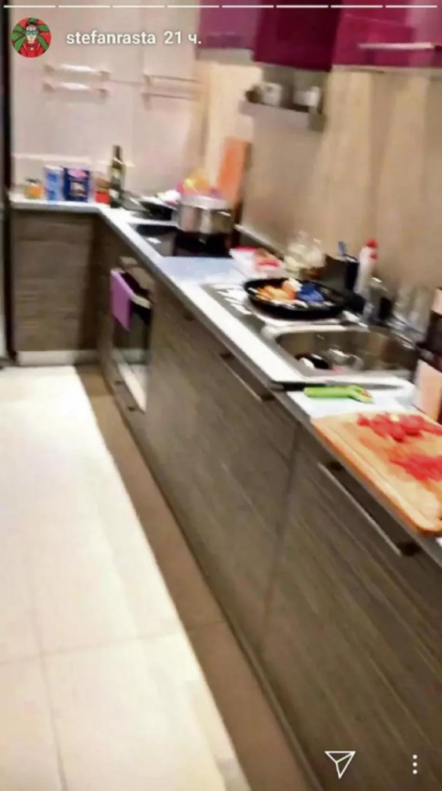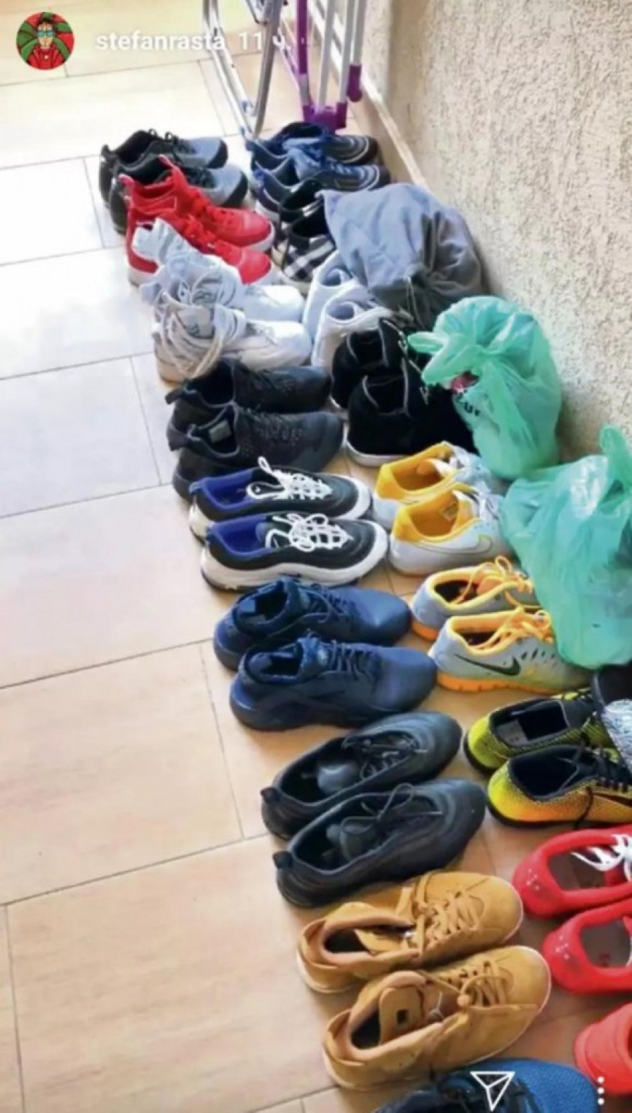 Na fotografijama koje je objavio u vidu Instagram storija mogu se videti dečije igračke, veliki broj patika koje reper nosi, a koje mu stoje na terasi, kao i kako izgleda njegovo kupatilo, ali i kuhinja gde sam sebi sprema hranu.