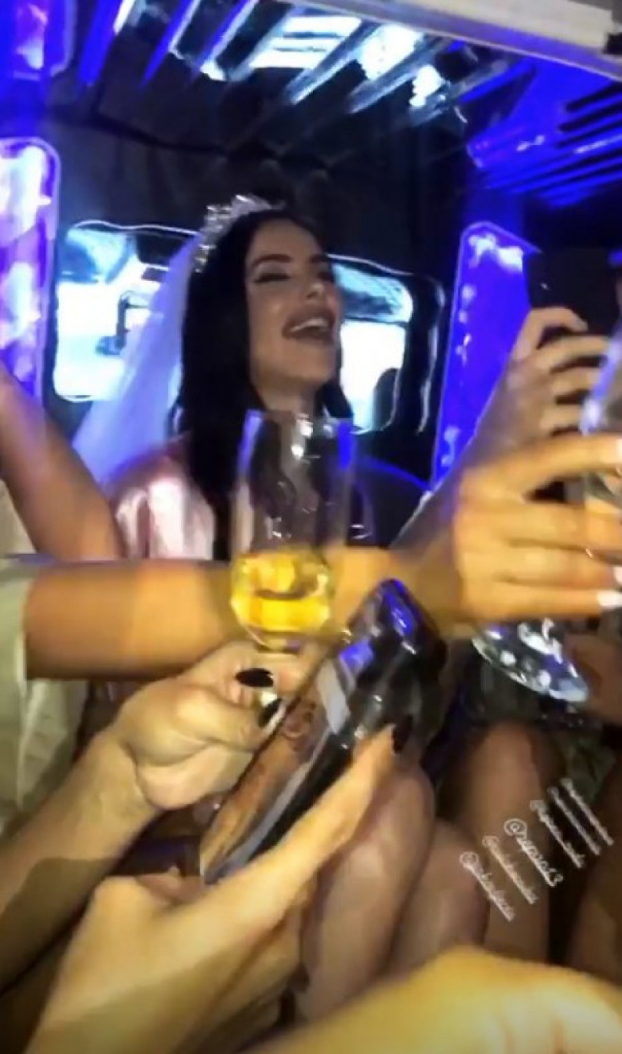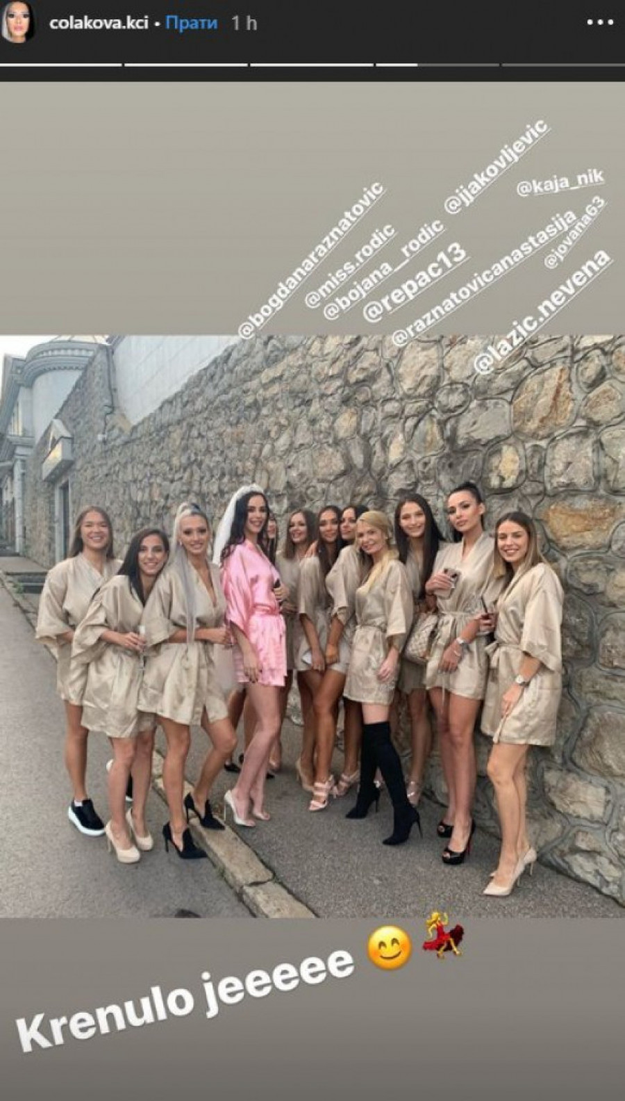 Foto: instagram.com/raznatovicanastasijaOna je za ovu priliku obukla svileni roze bade mantil, a na glavi je nosila krunu, pa je sa prijateljicama "uskočila" u limuzinu u kojoj pevaju i Anastasijine pesme, a sve devojke nose zlatne bade mantile. Snimke na Instagram objavila je Anastasija Ražnatović, za koju se spekulisalo da neće biti na devojačkoj večeri.