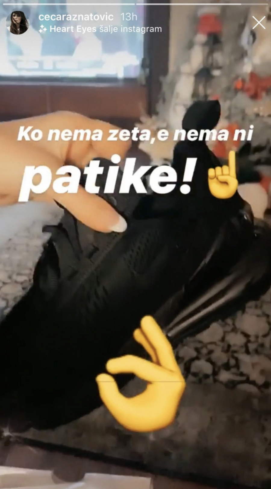 Folk zvezda Svetlana Ceca Ražnatović pohvalila se na Instagramu novim patikama poznatog brenda koje koštaju oko 150 evra u dinarskoj protivvrednosti, ali ono što je najinteresantnije u njenoj objavi nisu moderne crne patike, nego opis uz njih.