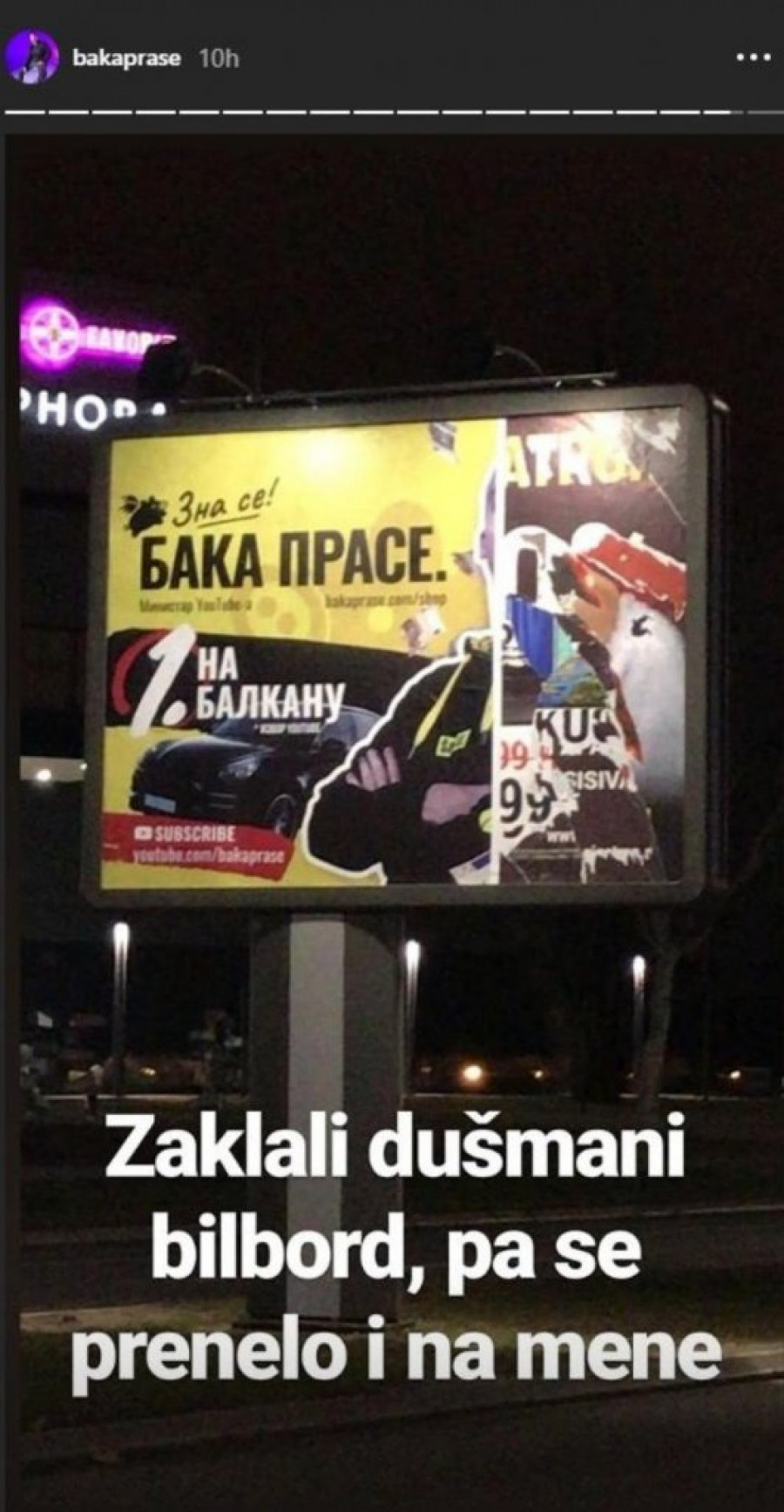 Foto: Youtube.com/Baka PraseI dok je Bogdan delio slike fanova koji slikaju bilborde u svim krajevima grada, Baka je podelio jedan totalno uništen bilbord, uz poruku: