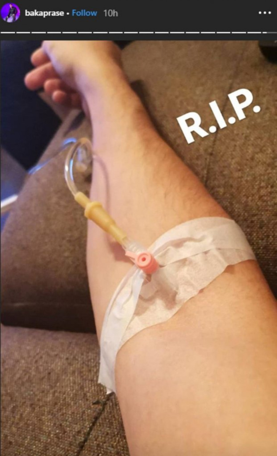 Foto: instagram.com/bakapraseKako je napisao, opet se razboleo jer je zadao sebi brutalni tempo koji ne može da isprati. Zato je na infuziji, narovno da je Baka to ironično napisao, pravi uzrok još uvek nije poznat.