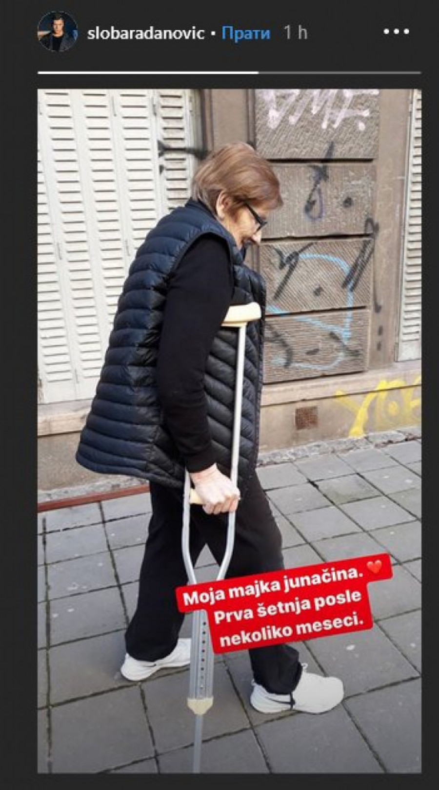 - Moja majka junačina! Prva šetnja posle nekoliko meseci - napisao je Sloba uz fotografiju majke.