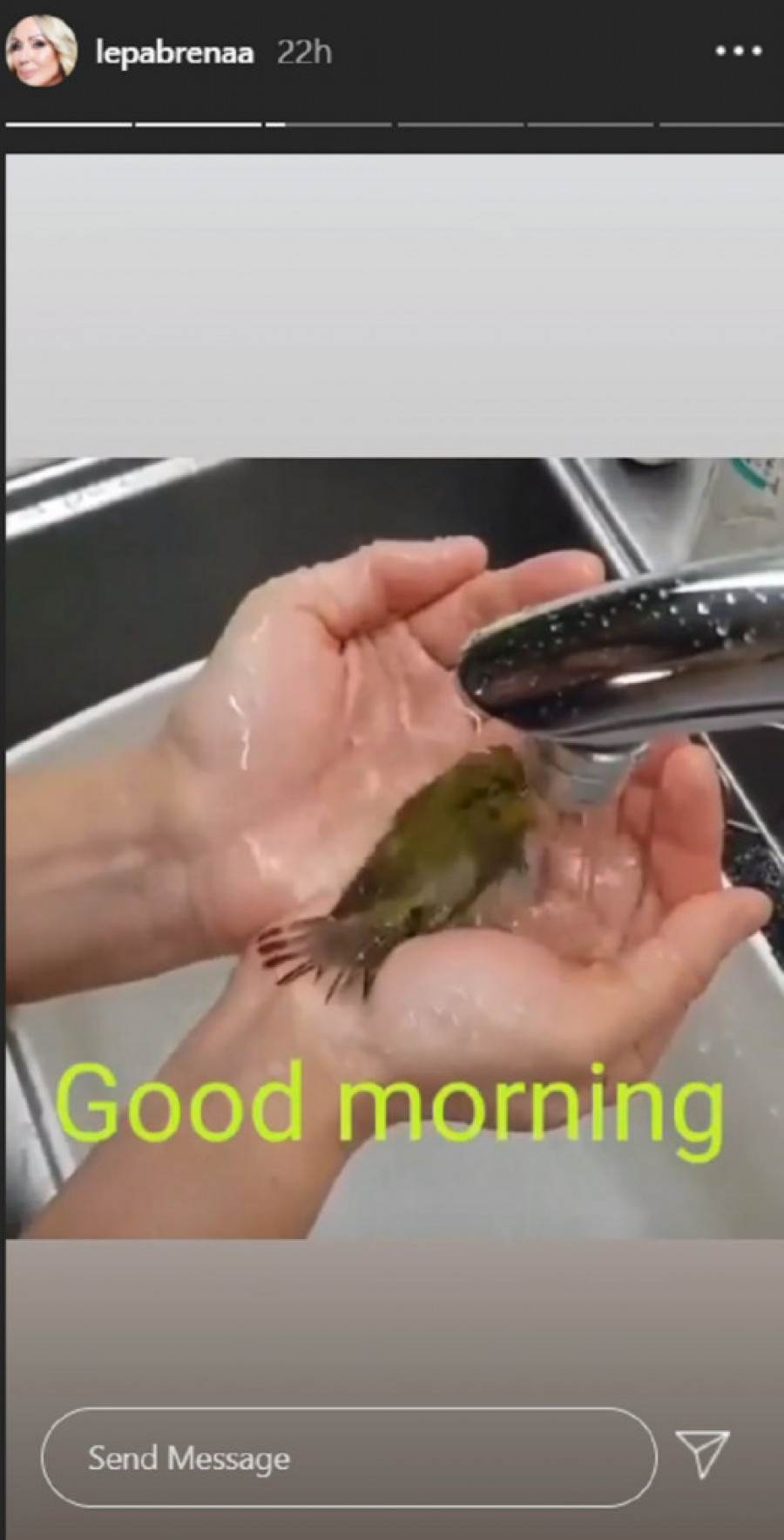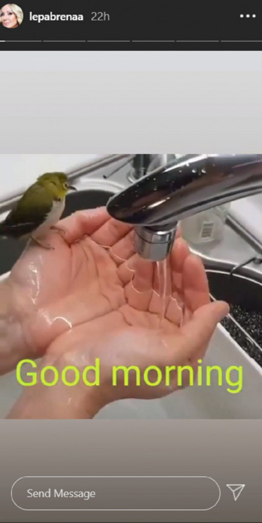Pre svega, pevačica je u poruci poželela svima dobro jutro, ali imala je i jednog nesvakidašnjeg posetioca.