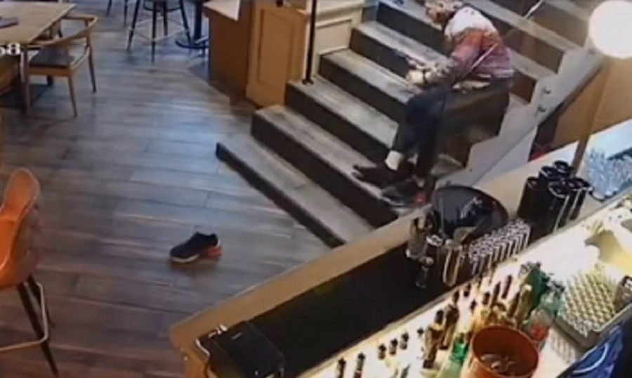 Sloba je napuštao restoran, a potom skliznuo niz stepenište, a tokom pada je ostao i bez patike.