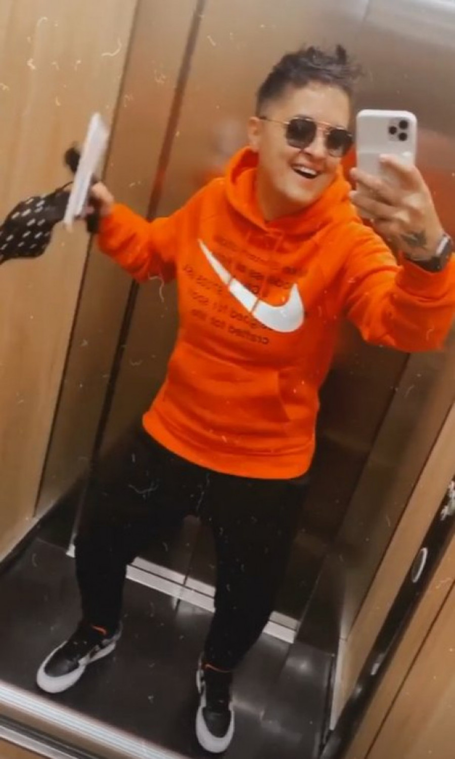 Šerifovićeva je u nabavku namirnica krenula u narandžastoj dukserici, a maska kojom je uoči današnjeg izlaska iz kuće prekrila lice opravdala je njen status na našoj javnoj sceni, budući da je svud po sebi imala zvezde.