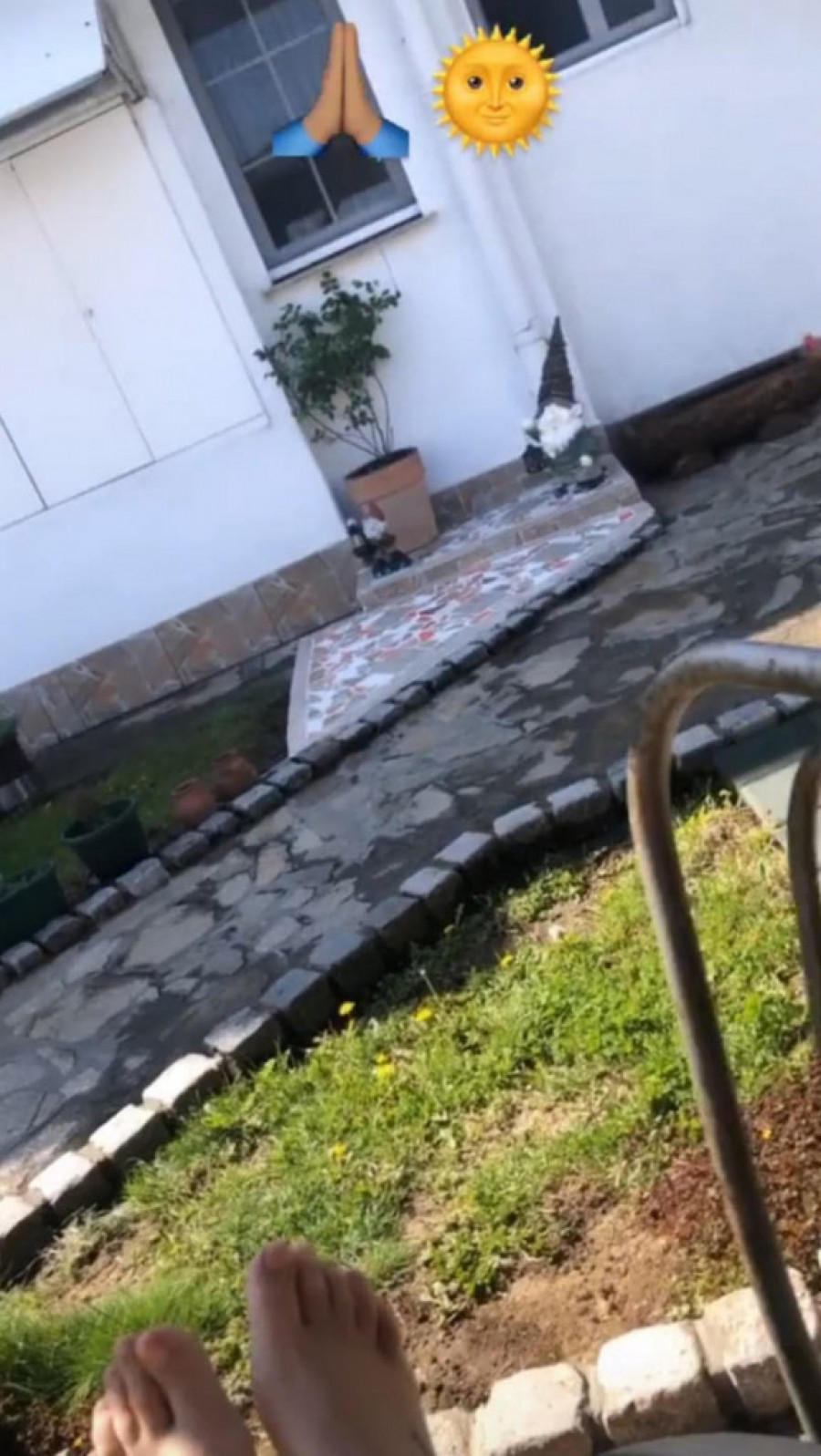 Na videu se vidi kako se pevačica sunča u dvorištu.