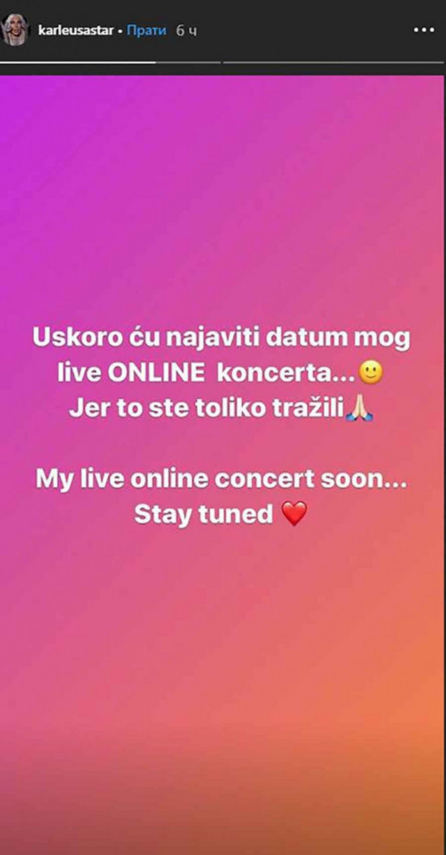 Foto: instagram.com/karleusastarPodsećanja radi, Karleuša je poslednji put održala koncert 2013. godine. Najavljeni neće biti toliko glamurozan, ali će se bez sumnje potruditi da bude spektakularan.