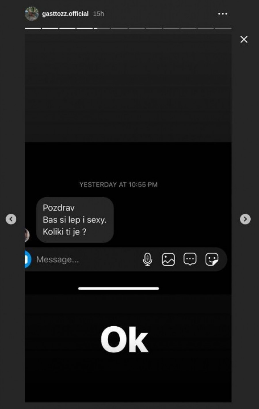 Foto: instagram.com/gasttozz.official- Pozdrav. Baš si lep i s*ksi. Koliki ti je? - glasila je poruka iz inboksa Marinkovića, na šta je on odgovorio samo sa "Ok".