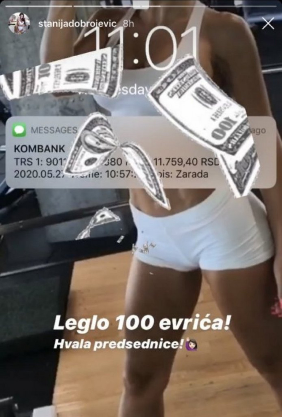 - Leglo 100 evrića! Hvala predsedniče! - napisala je ona.