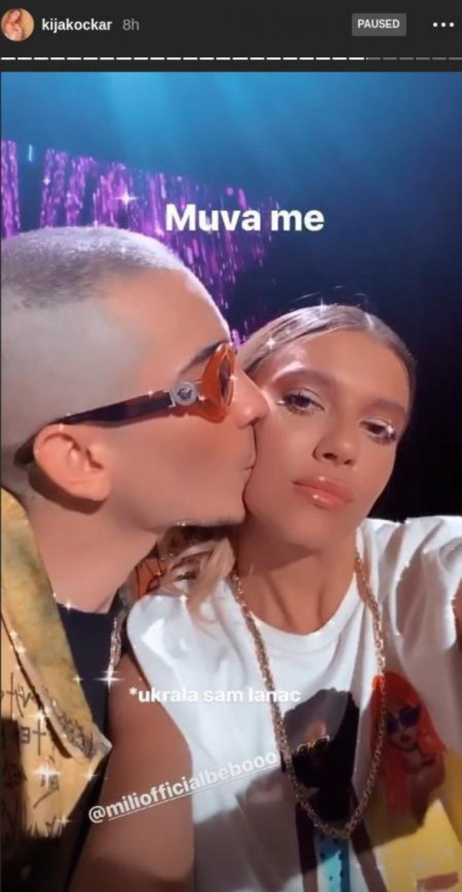 Foto: youtube.com/printscreenKija je na svom Instagram storiju postavila fotografiju na kojoj je Mili ljubi u obraz, ali opis iste je ono što je svima zapalo za oko: