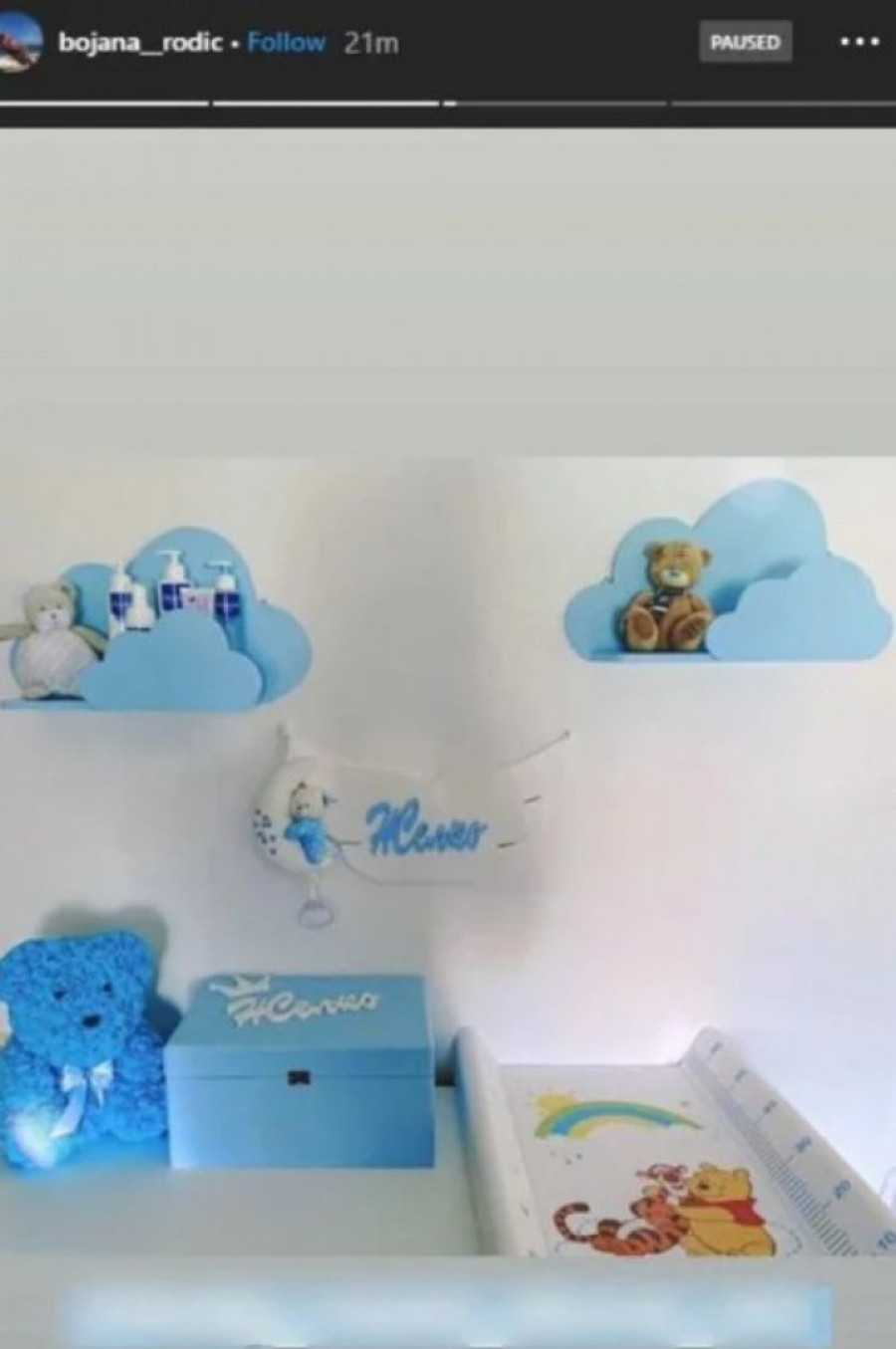 Foto: ST/Vladimir LukićBojana je objavila fotografije na kojima se vidi podloga za presvlačenje, kutija sa Željkovim imenom, kao i oblaci nalepljeni po zidovima. Sve je u plavoj boji, baš kao i kolevka, a već su usledili komentari da soba za bebu izgleda bajkovito.