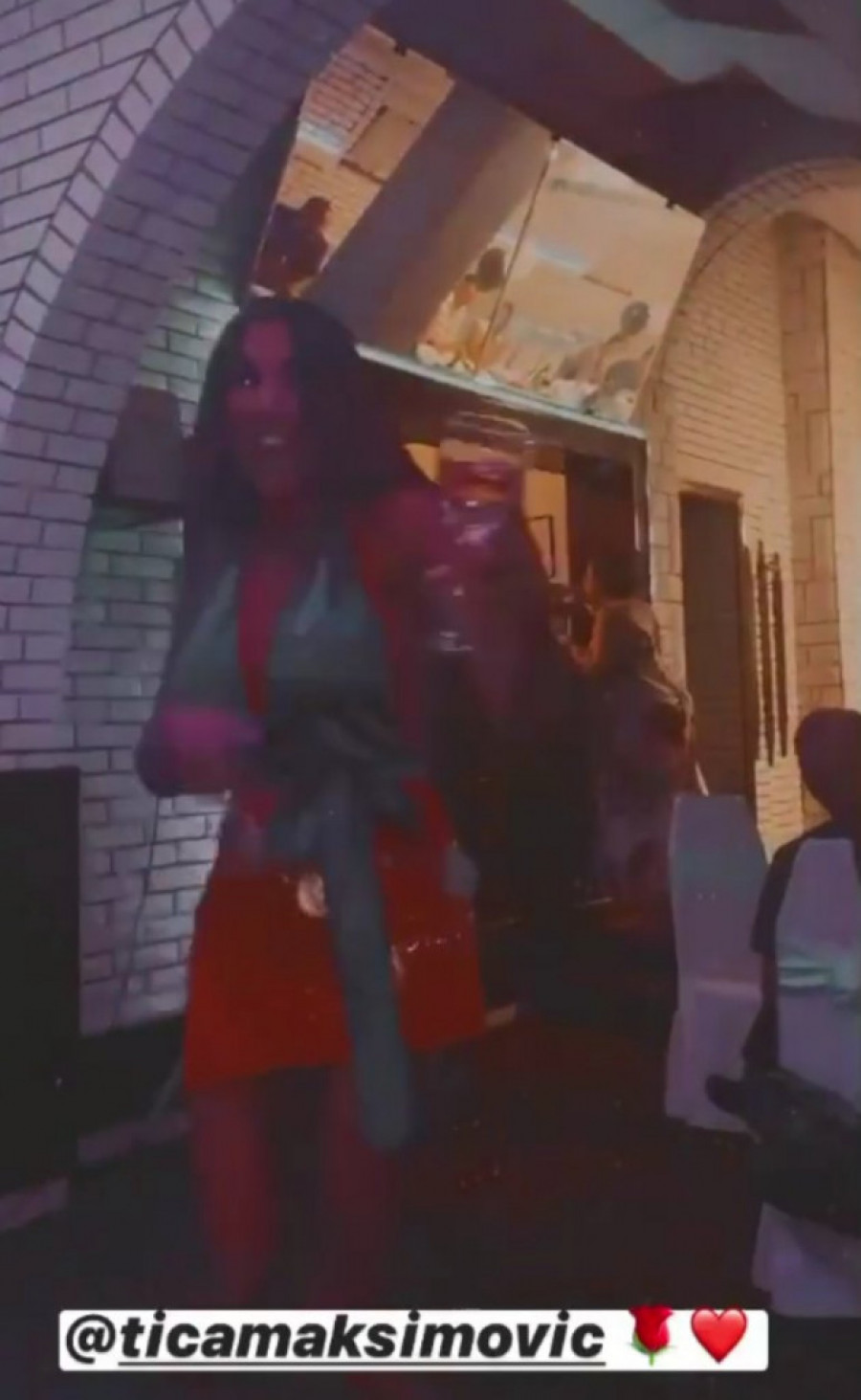 Raširenih ruku, u svečanoj narandžasto-zelenoj toaleti sa kitnjasto zlatnim nakitom, pojavila se među prvima u masi Matejinih rođaka i bliskih prijatelja, a pevačica koja je bila zadužena za podizanje atmosfere zabeležila je njen ulazak u restoran uz komentar: "Podigla se iz pepela". Cele večeri se pilo, a slavljenik je slao poljupce i srca Tijani, koja mu je priredila iznenađenje.