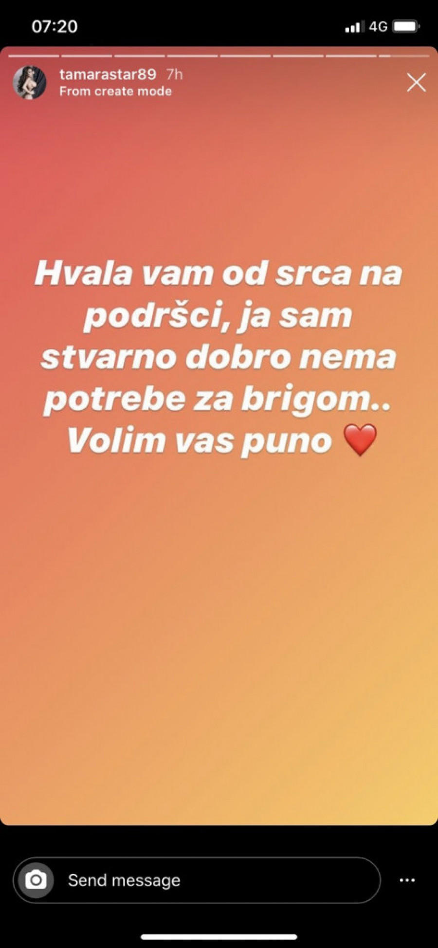 A ubrzo se zahvalila i svima koji joj pružaju podršku tokom teških trenutaka...