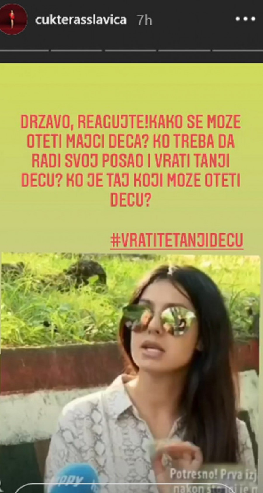 - Državo, reaguj, kako se mogu majci oteti deca? Ko treba da radi svoj posao i vrati Tanji decu? Ko je taj koji može oteti decu? Vratite Tanji decu - napisala je Slavica u komentaru objave.