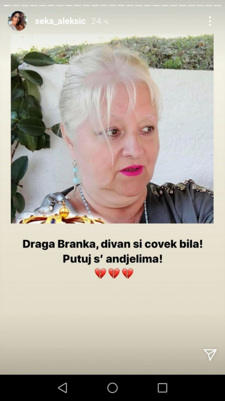 Pevačica je naime, podelila sliku na kojoj je izvesna Branka, koja je pevačici očigledno mnogo značila, a koja je preminula.