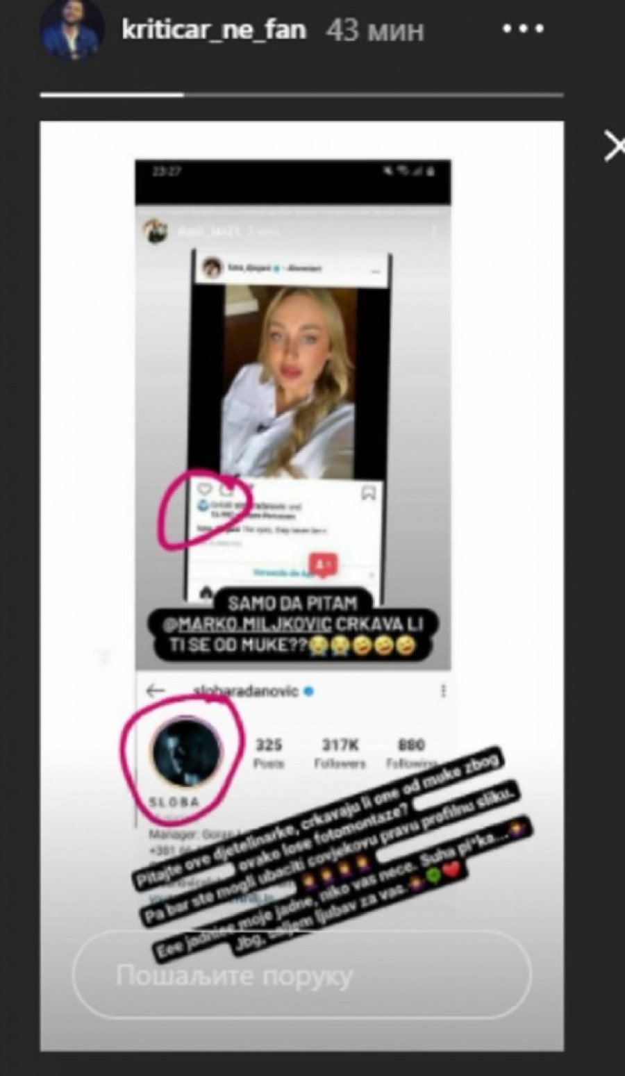 Naime, takozvane “detelinarke”, odnosno, oni koji su nekada podržavali vezu Slobe i Lune, očigledno su napravili Slobin lažni profil i sa njim lajkovali novu Luninu fotografiju na “Instagramu”, a sve kako bi ponovo provocirali Marka Miljkovića.
