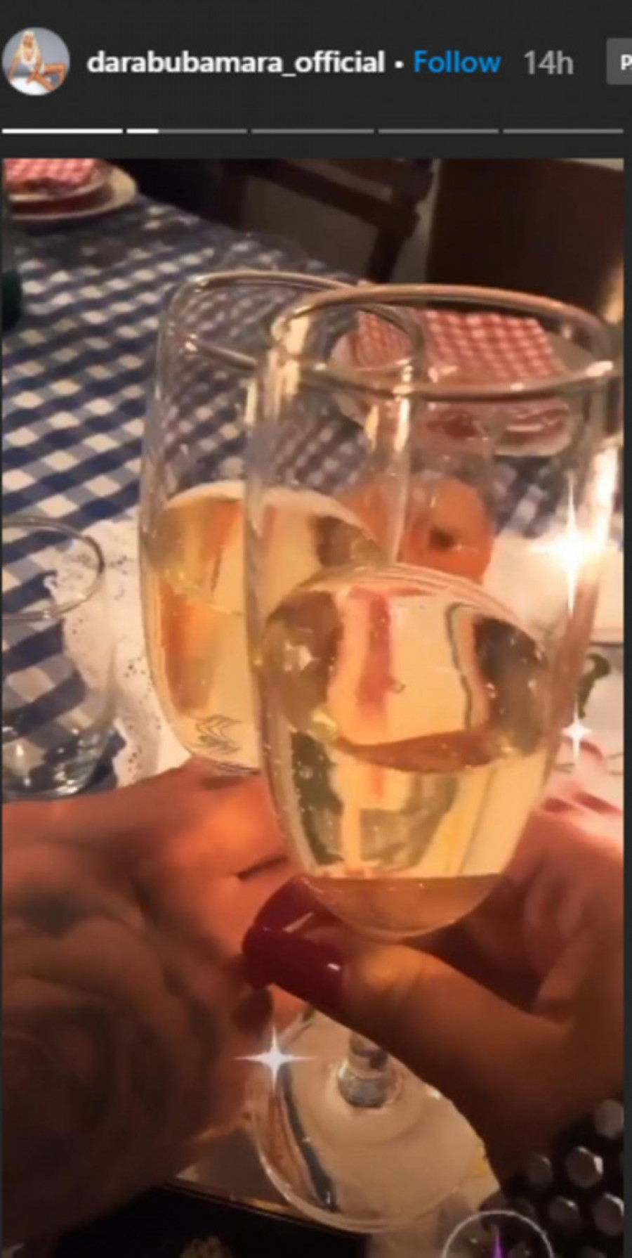 U jednom trenutku, Dara je snimila i kako nazdravlja sa partnerom, a osmeh nije skidala sa lica.