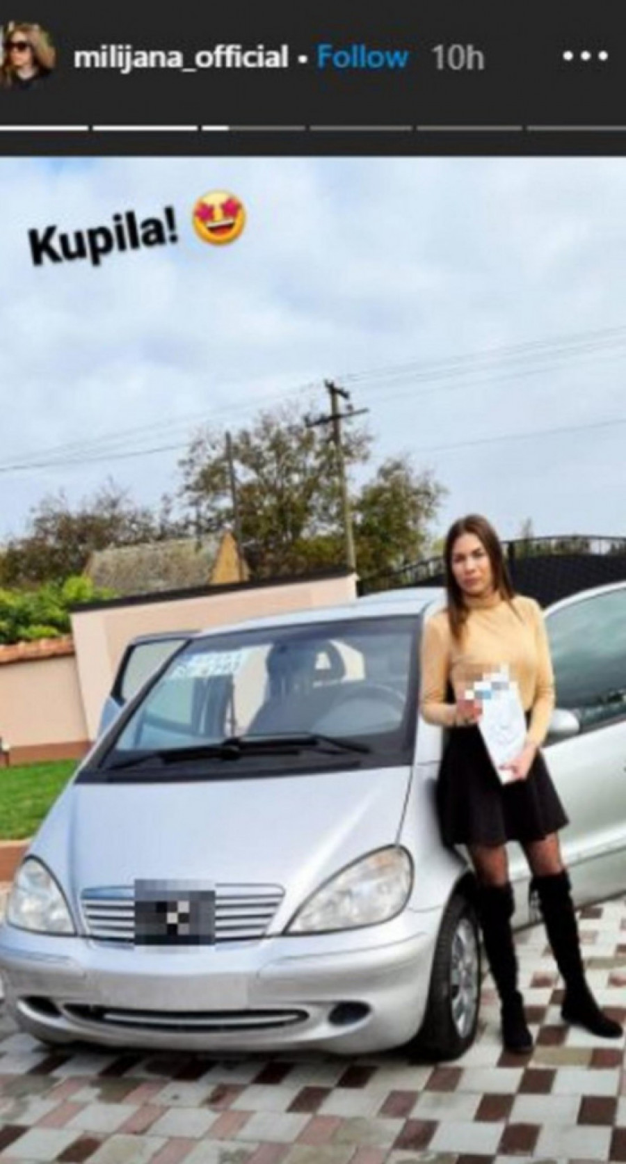 Milijana Bogdanović (22) je nedavno otkrila da ima novog "dečka", penzionera Miloša (61), a sada je na svom Instagram profilu objavila fotografiju i pohvalila se novim automobilom.