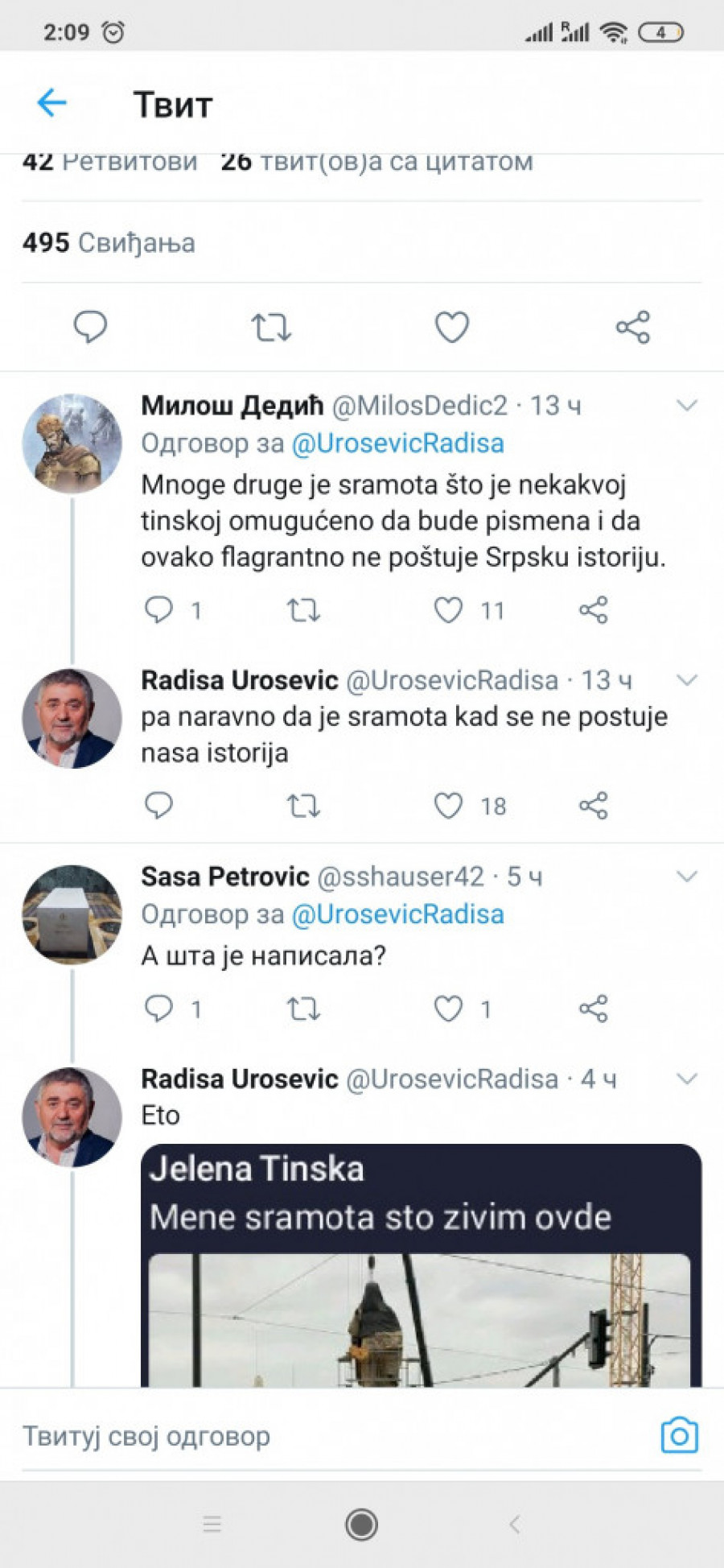 - Mnoge druge je sramota što je nekakvoj Tinskoj omogućeno da bude pismena i da ovako flagrantno ne poštuje srpsku istoriju - slovio je jedan od komentara.